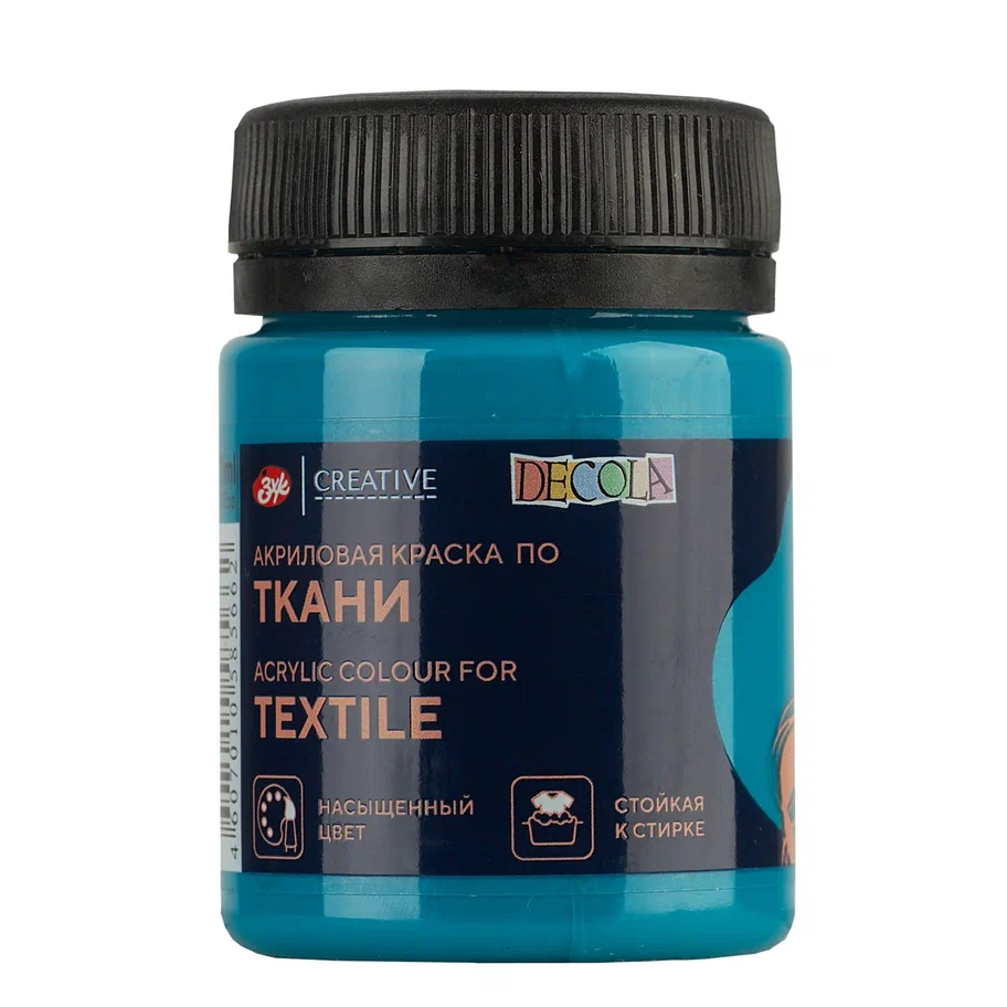 —Краска акриловая по ткани DECOLA банка 50 мл, 507 Бирюзовая NP-4128507