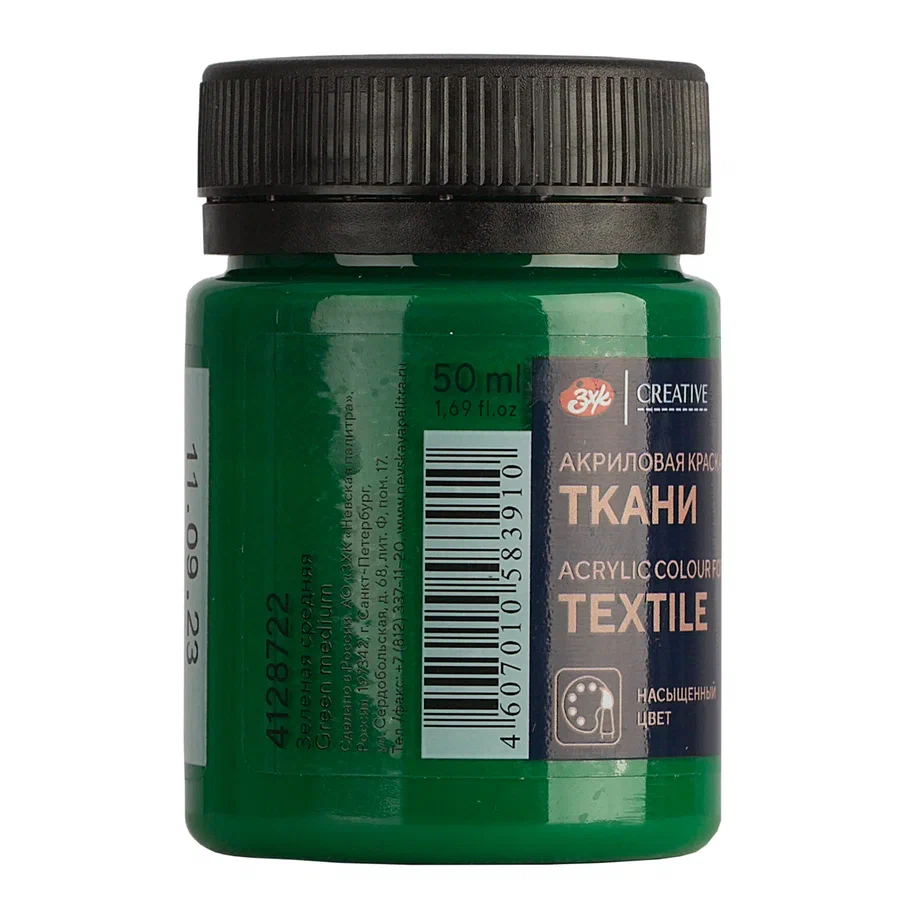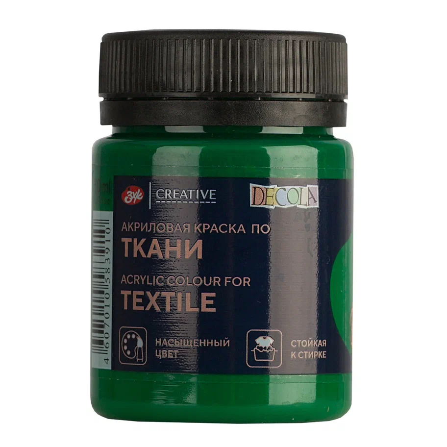 Краска акриловая по ткани DECOLA банка 50 мл, 722 Зеленая средняя NP-4128722