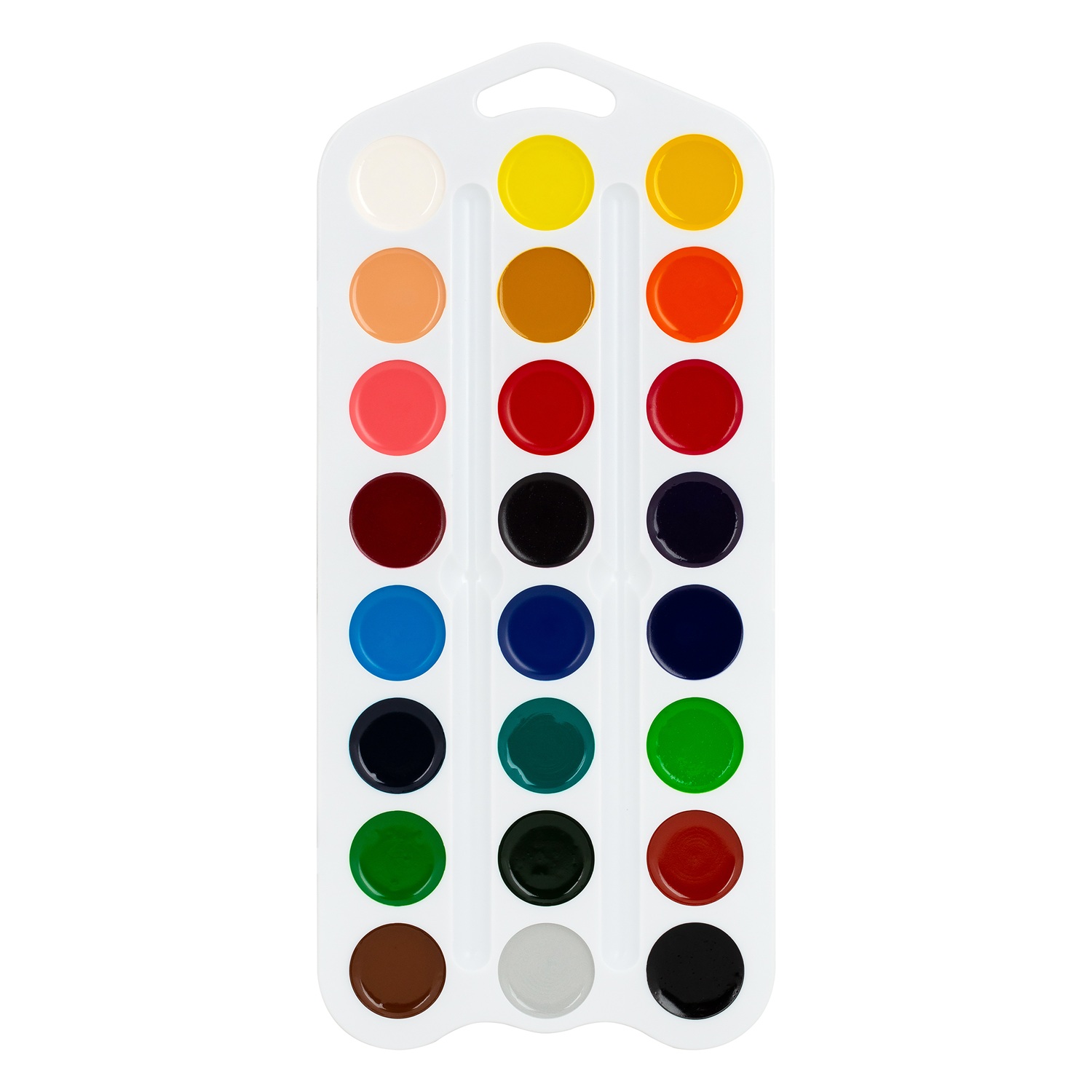 Краски легко набираются на влажную кисть и отлично смешиваются между собой. Весь набор упакован в компактный пластиковый пенал, который не занимает много места в рюкзаке, а его крышка служит удобной палитрой для создания новых уникальных оттенков.