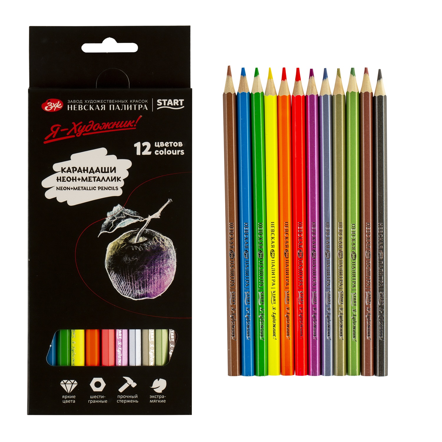 —Набор цветных карандашей Я-ХУДОЖНИК! 12 цв (6 неоновых + 6 металлик) в картонной упаковке NP-267412250