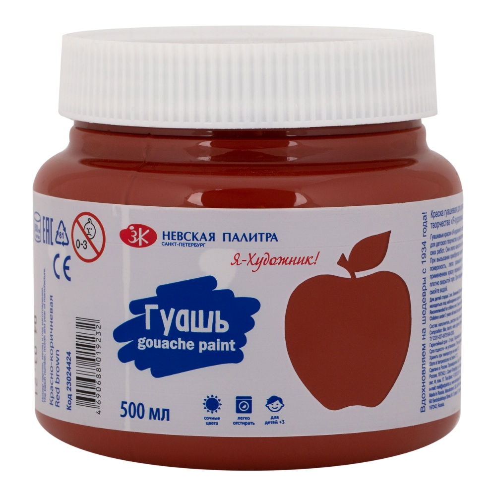 Гуашь Я-ХУДОЖНИК! 500 мл, 424 Красно-коричневая NP-23024424
