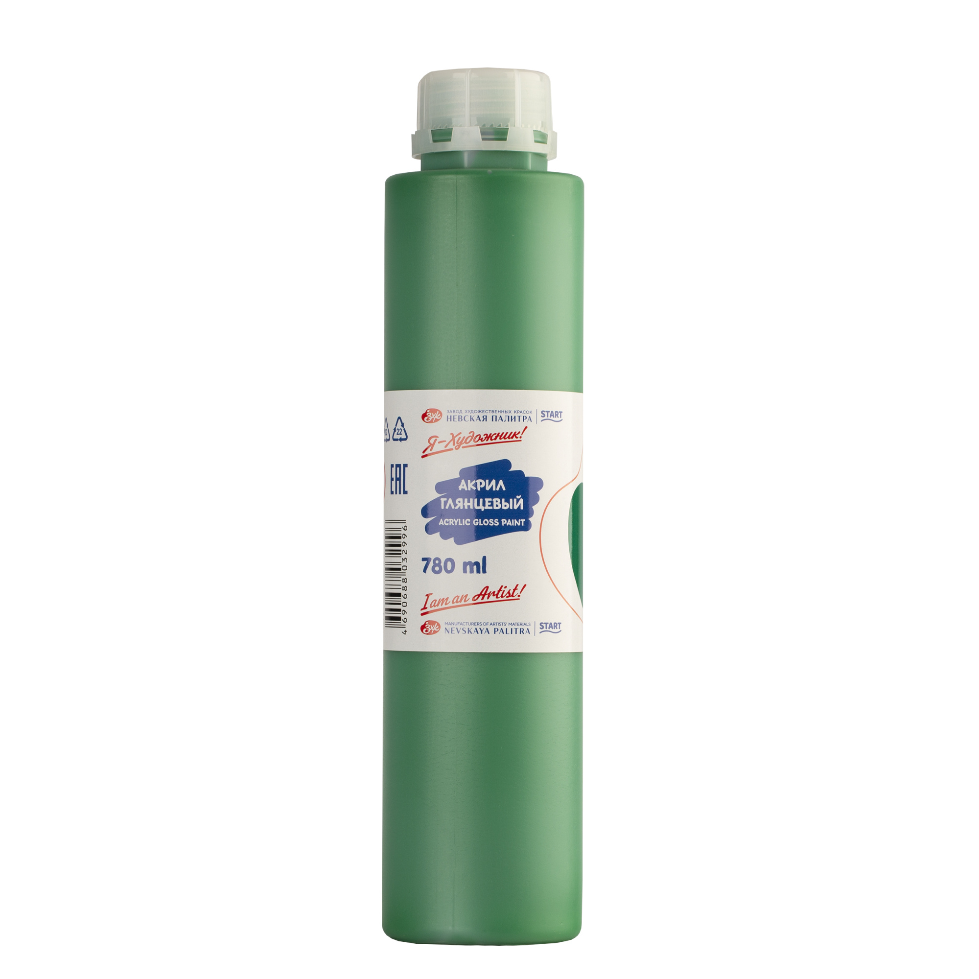 Краска акриловая Я-ХУДОЖНИК! глянцевая, банка 780 мл, 725 Зеленая NP-229145725