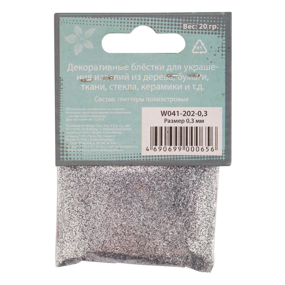 Блестки декоративные DECOLA размер 0.3 мм, 20 г, серебро NP-W041-202-0,3
