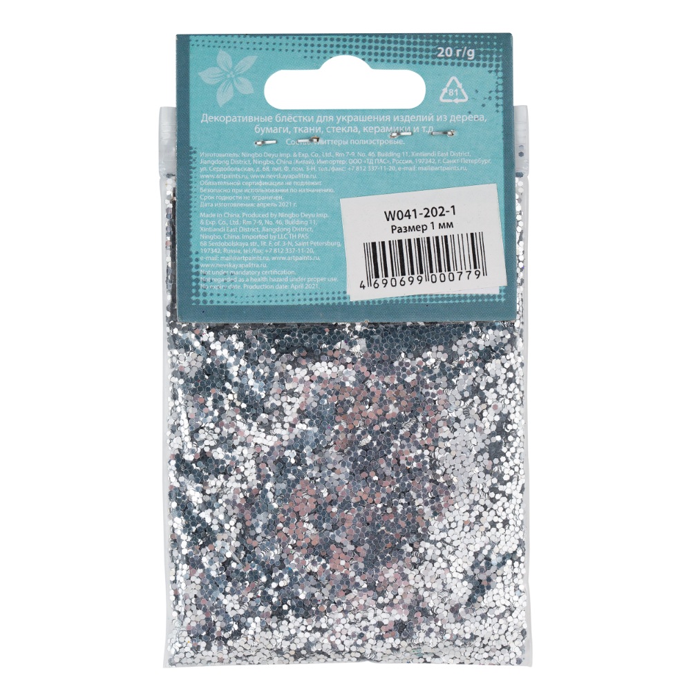 Блестки декоративные DECOLA размер 1 мм, 20 г, серебро NP-W041-202-1