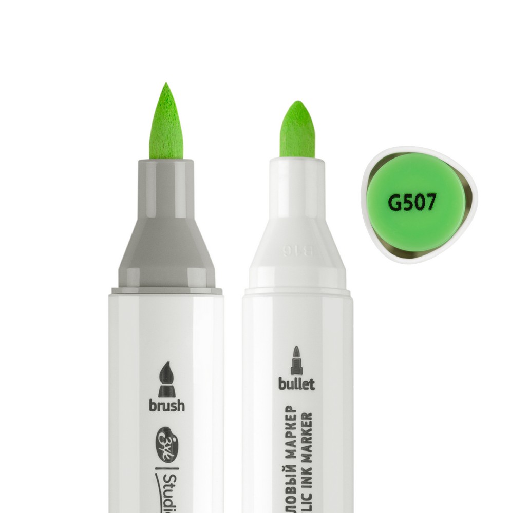 —Маркер акриловый двусторонний СОНЕТ перо кисть/пуля 1 шт G507 зелёный травяной NP-273-G507