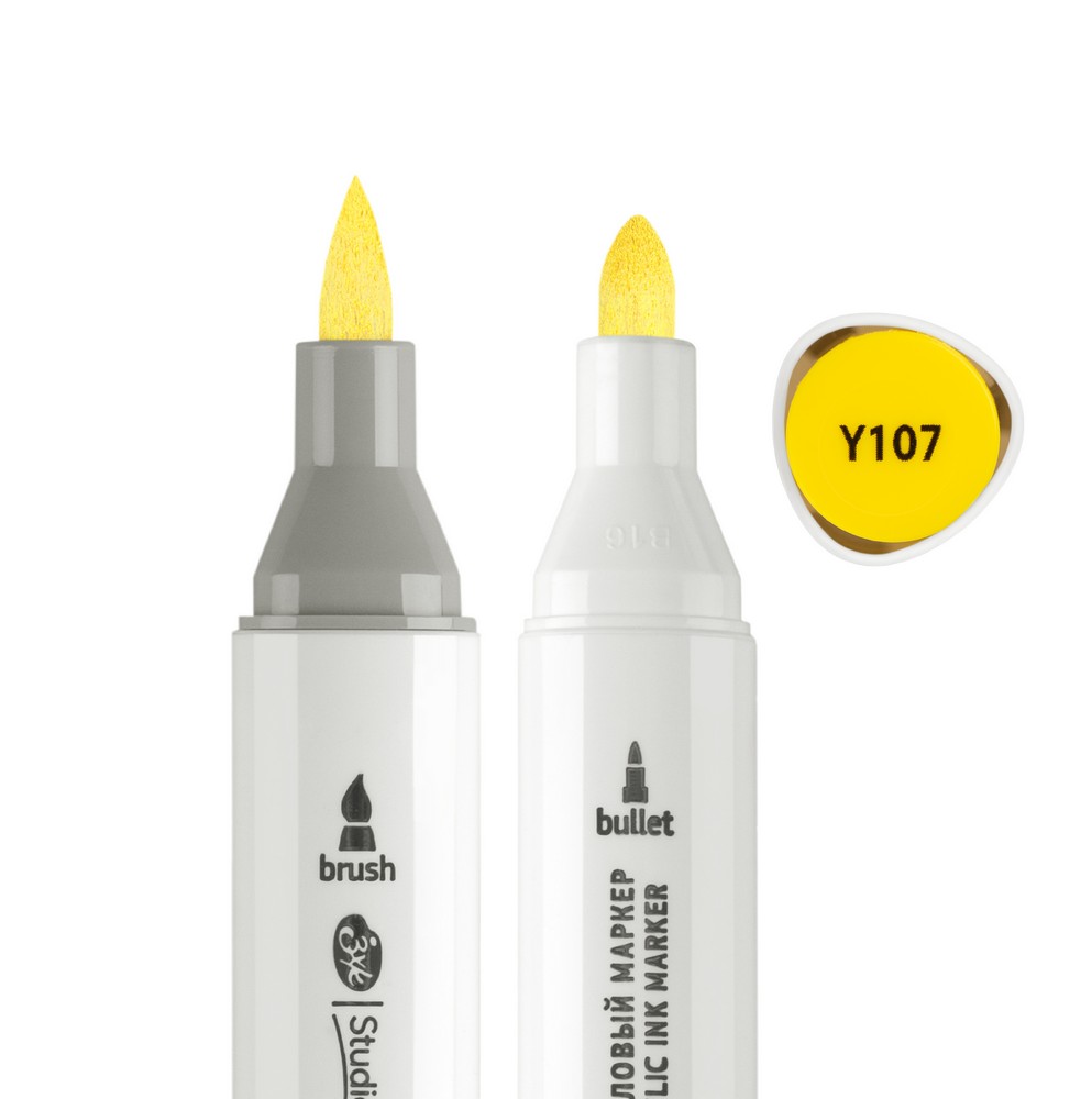 —Маркер акриловый двусторонний СОНЕТ перо кисть/пуля 1 шт Y107 жёлтый светлый NP-273-Y107