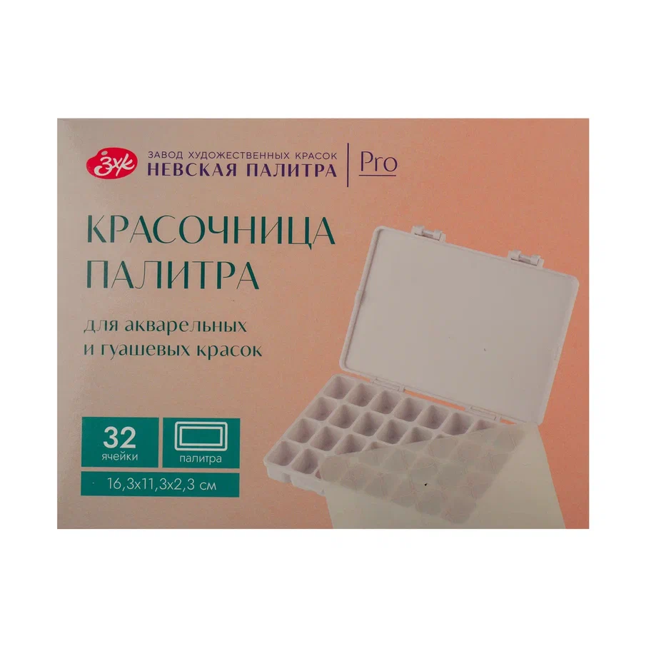 Красочница-палитра 32 ячейки НЕВСКАЯ ПАЛИТРА 16.3 x 11.3 x 2.3 см NP-249412614