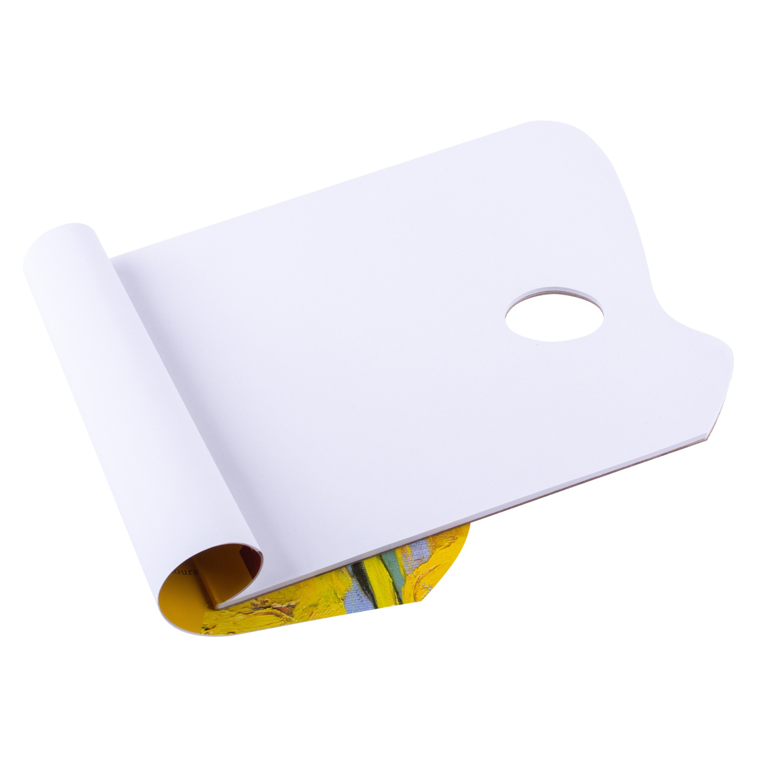 <p>Альбом имеет эргономичную форму с изгибом и отверстием для большого пальца, что позволяет комфортно держать его на весу длительное время. Основание из плотного картона придает конструкции необходимую жесткость, делая палитру идеальным спутником на пленэрах и выездных мастер-классах. После завершения работы использованный лист просто отрывается и утилизируется, оставляя перед вами чистую поверхность для новых творческих задач.</p>