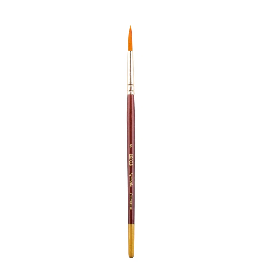 Круглые синтетические кисти Decola – это универсальный инструмент, созданный для работы с акрилом, гуашью и маслом. Они идеально подходят для прорисовки мелких деталей и создания точных контуров, а также могут использоваться для заполнения крупных форм.