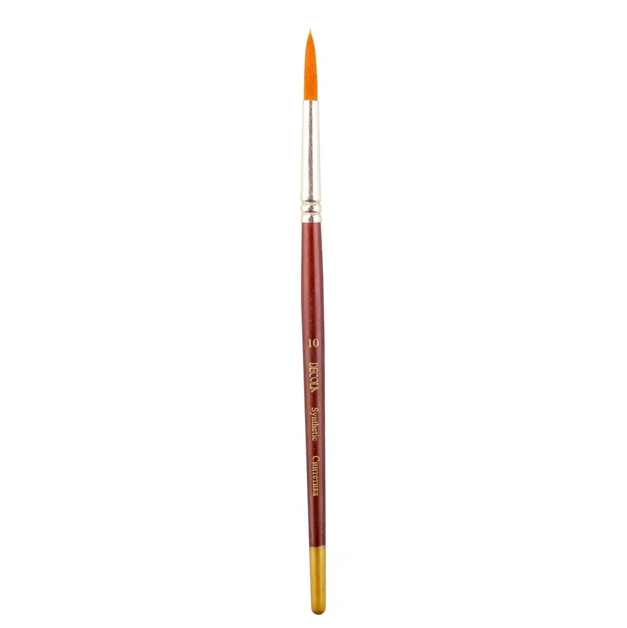 Круглые синтетические кисти Decola – это универсальный инструмент, созданный для работы с акрилом, гуашью и маслом. Они идеально подходят для прорисовки мелких деталей и создания точных контуров, а также могут использоваться для заполнения крупных форм.