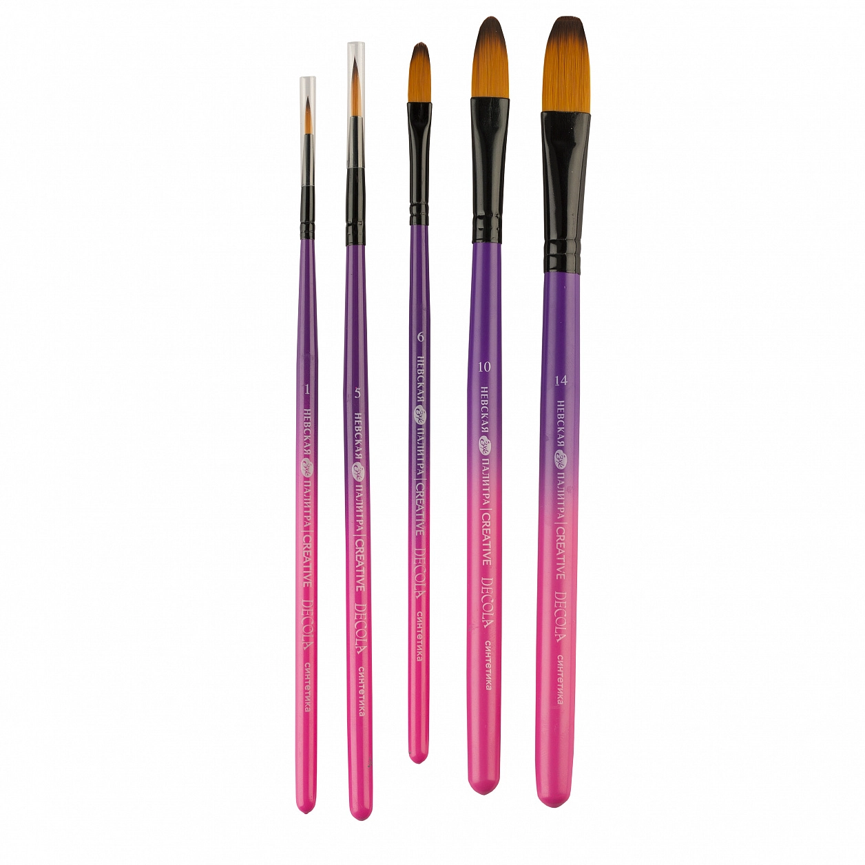 —Набор кистей из двухцветной синтетики DECOLA №6, 5 шт (круглая, короткая ручка № 1, 5, овальная, короткая ручка № 6, 10, 14) NP-11245410