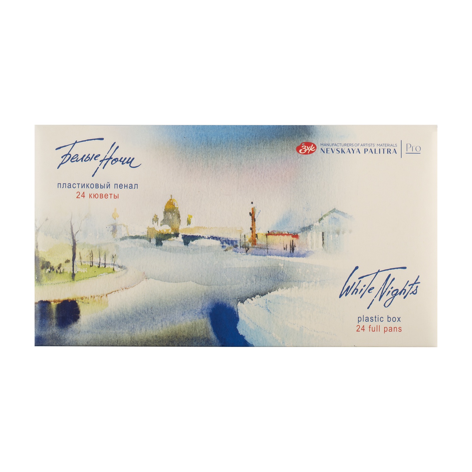 <h3>Набор акварельных красок «Белые Ночи» в кюветах (24 цвета) — профессиональная палитра в функциональном пенале.</h3>