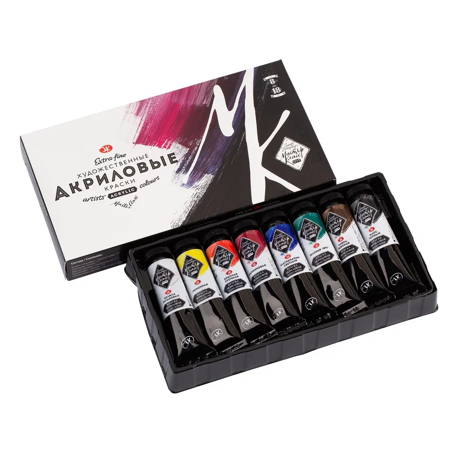 Набор акриловых красок МАСТЕР-КЛАСС 8 шт х 18 мл, картон NP-12341317