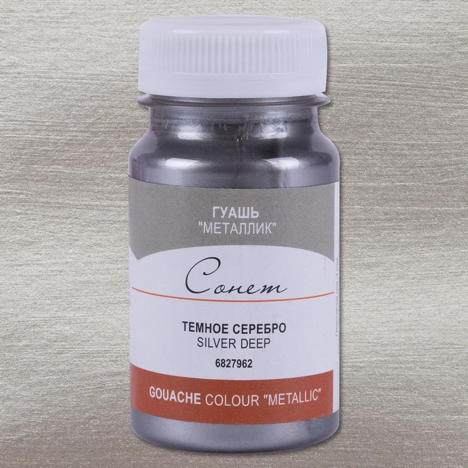 Гуашь СОНЕТ металлик, банка 100 мл, 962 Серебро темное NP-6827962