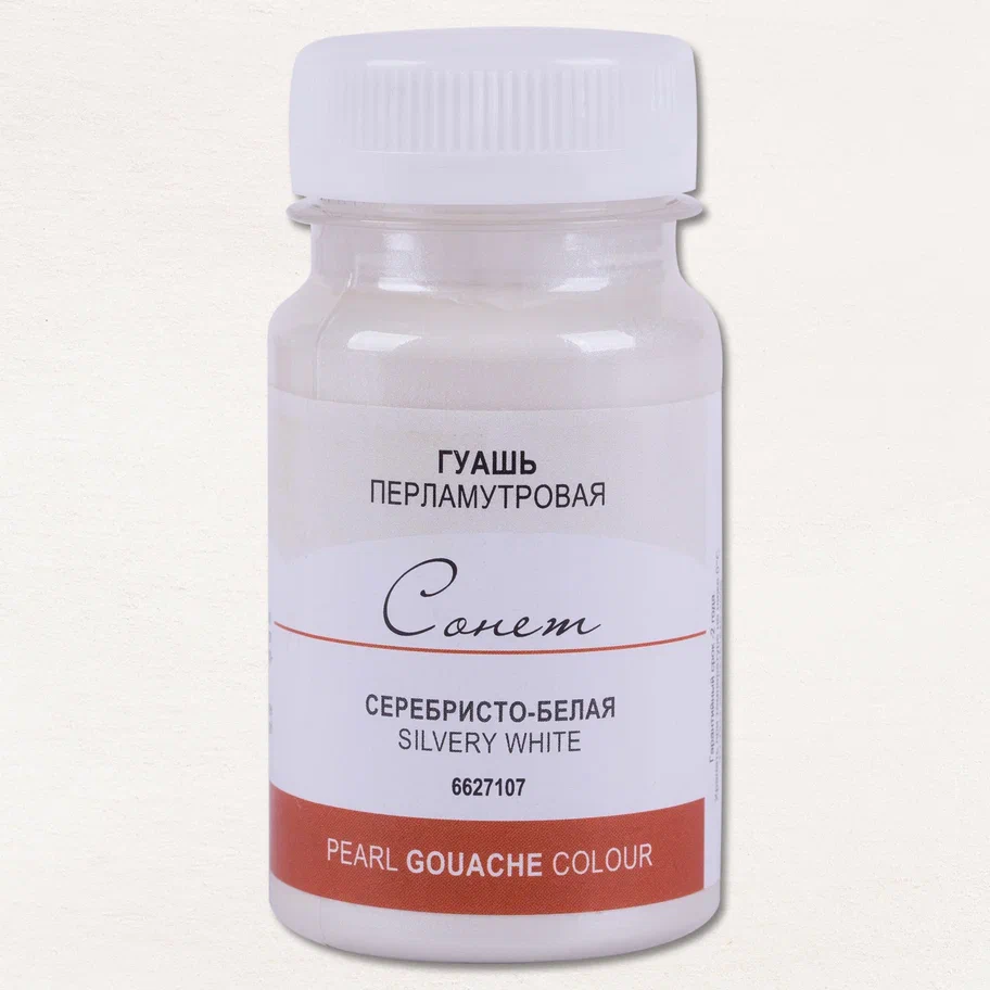 Гуашь СОНЕТ перламутровая, банка 100 мл, 107 Серебристо-белая NP-6627107