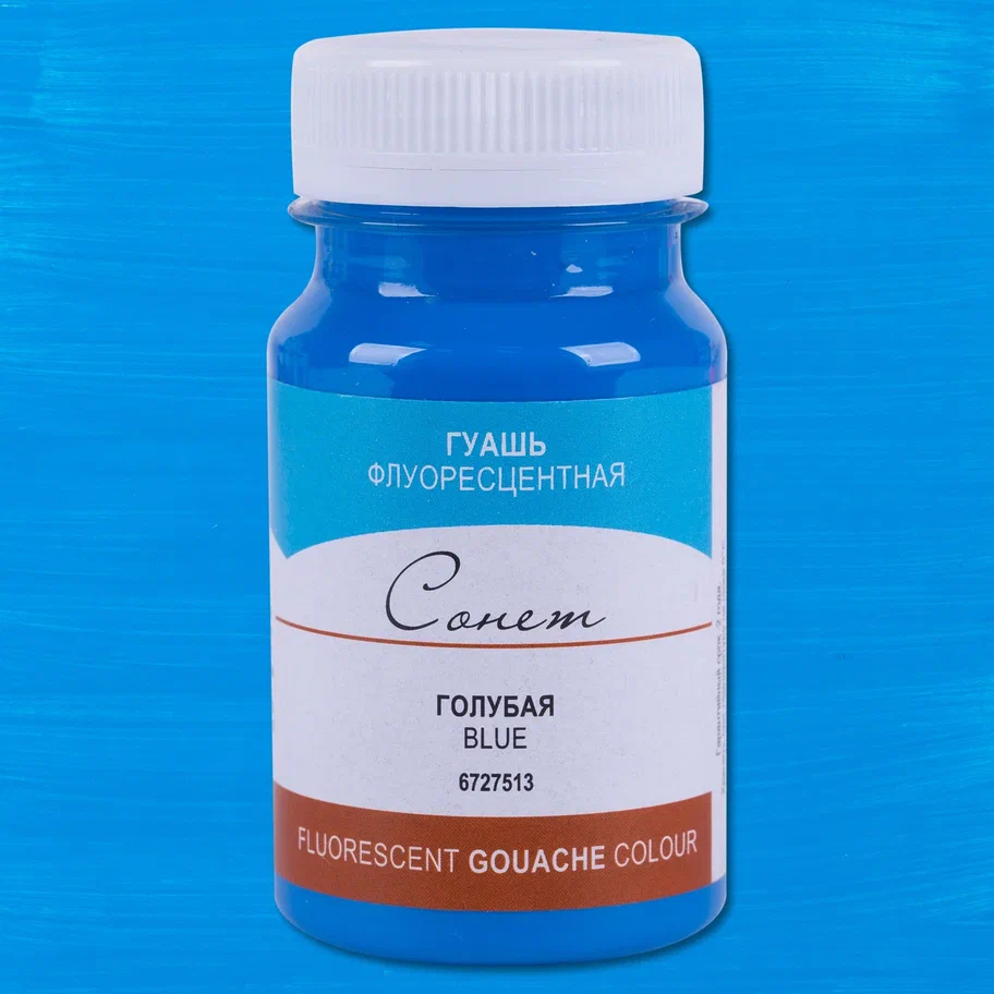 Гуашь СОНЕТ флуоресцентная, банка 100 мл, 513 Голубая NP-6727513