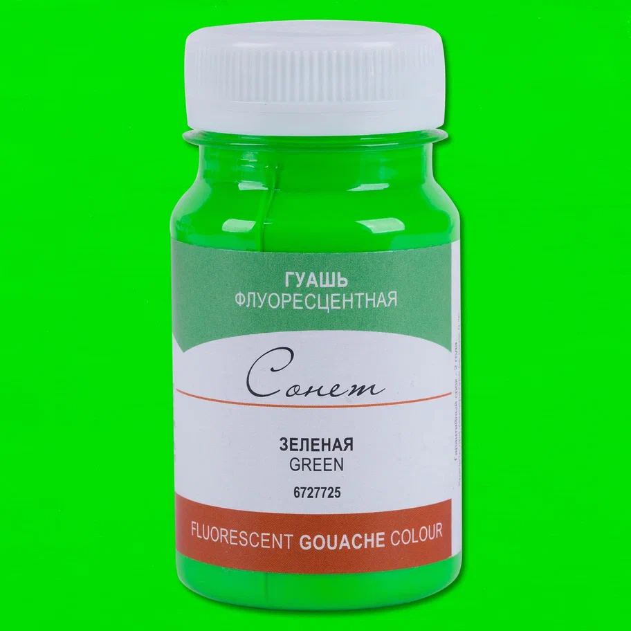 Гуашь СОНЕТ флуоресцентная, банка 100 мл, 725 Зеленая NP-6727725
