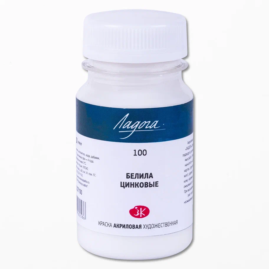 —Краска акриловая ЛАДОГА 100 мл, 100 Белила цинковые NP-2227100