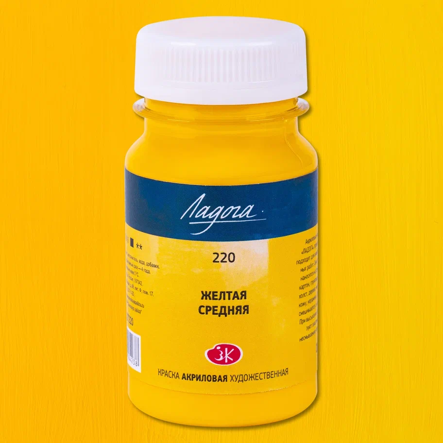 Краска акриловая ЛАДОГА 100 мл, 220 Желтая средняя NP-2227220