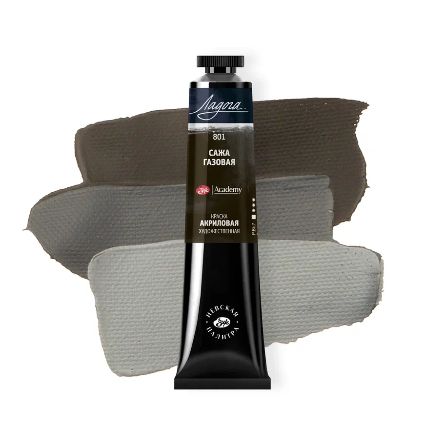 Краска акриловая ЛАДОГА 46 мл, 801 Сажа газовая NP-2204801