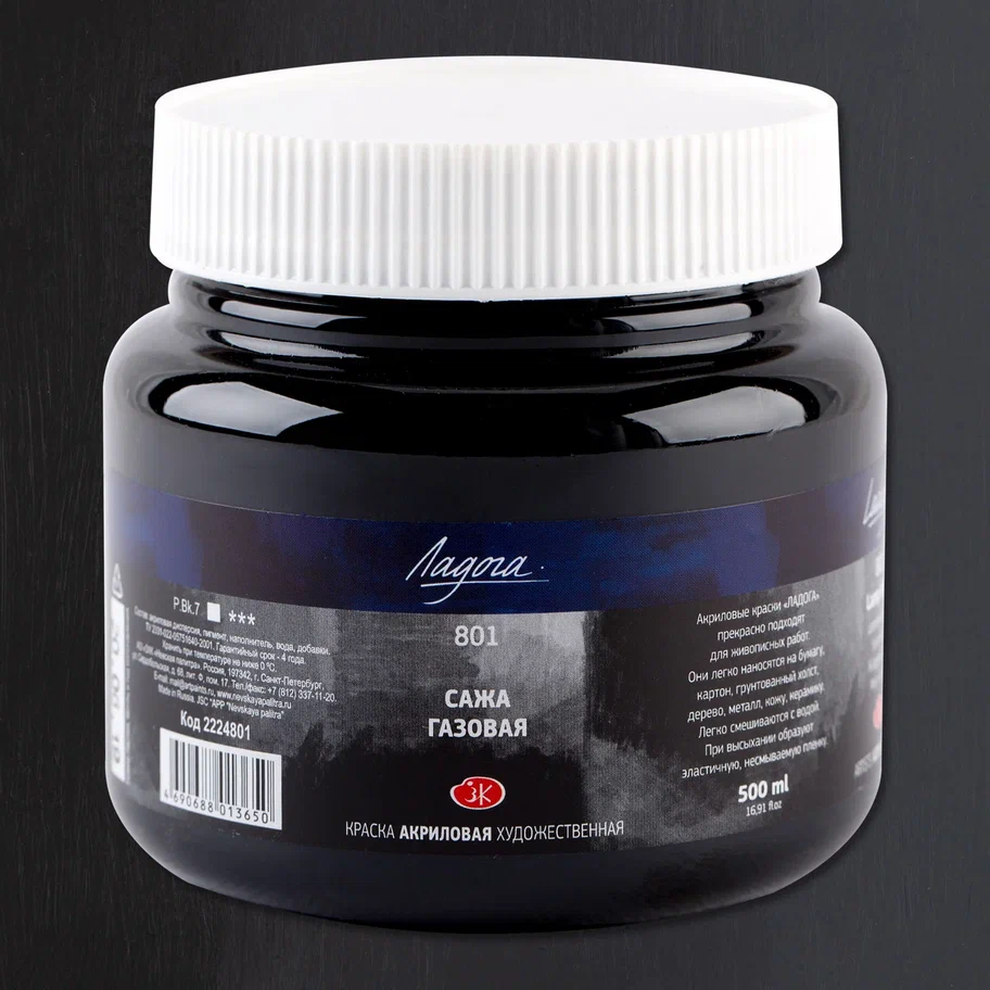Краска акриловая ЛАДОГА 500 мл, 801 Сажа газовая NP-2224801