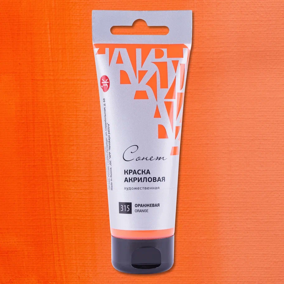 Краска акриловая СОНЕТ туба 75 мл, 315 Оранжевая NP-28109315