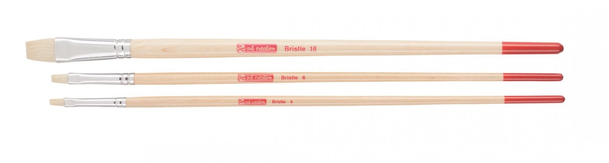 Talens Art Creation Brushes Set Hog Bristle Набор кистей для масла, акрила, гуаши. Волосяной пучок: свиная щетина. Форма: плоская. В наборе 3 кисти: 4мм, 8мм, 16мм.