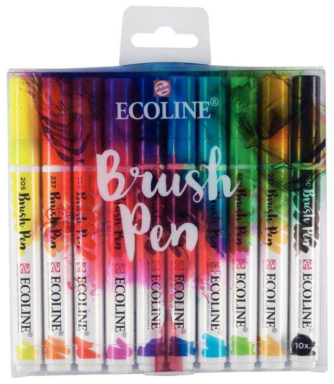 Набор акварельных маркеров Ecoline 10шт пластиковая упаковка. Акварельные маркеры Ecoline - это жидкая акварель Ecoline в удобной форме. Прекрасный инструмент для рисования не только дома или в студии, но и в дороге или на пленэре. Это идеальный материал для обучения акварельной технике, который увлечет не только взрослых, но и детей, благодаря своей яркости, форме и готовности к процессу рисования. Маркерами Ecoline легко закрасить крупный фрагмент рисунка или проделать тонкую работу эластичным кончиком. Смочите наконечник маркера, если вдруг забудете вовремя закрыть колпачком, и маркер снова готов к работе. Маркеры Royal Talens Ecoline применяются для иллюстрации, леттеринга, каллиграфии, fashion-скетчинга, дизайнерских зарисовок и много другого. В наборе 10 акварельных маркеров Royal Talens Ecoline Brush Pen, цвета: 205, 227, 237, 334, 337, 548, 506, 578, 600, 700.