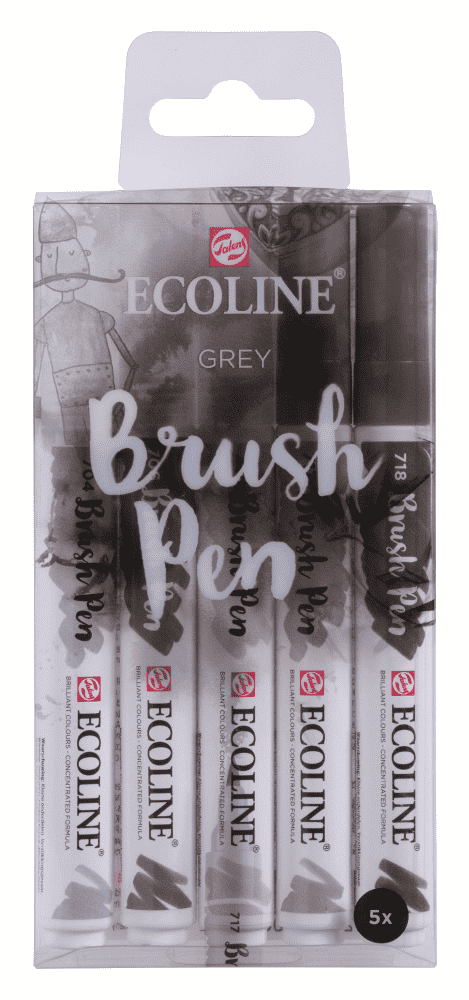 Набор акварельных маркеров Royal Talens Ecoline Brush Pen Серые 5 штук в пластиковой упаковке