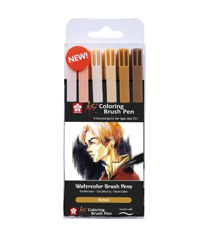 Набор маркеров акварельных Sakura "KOI" 6 шт, стержень кисточка