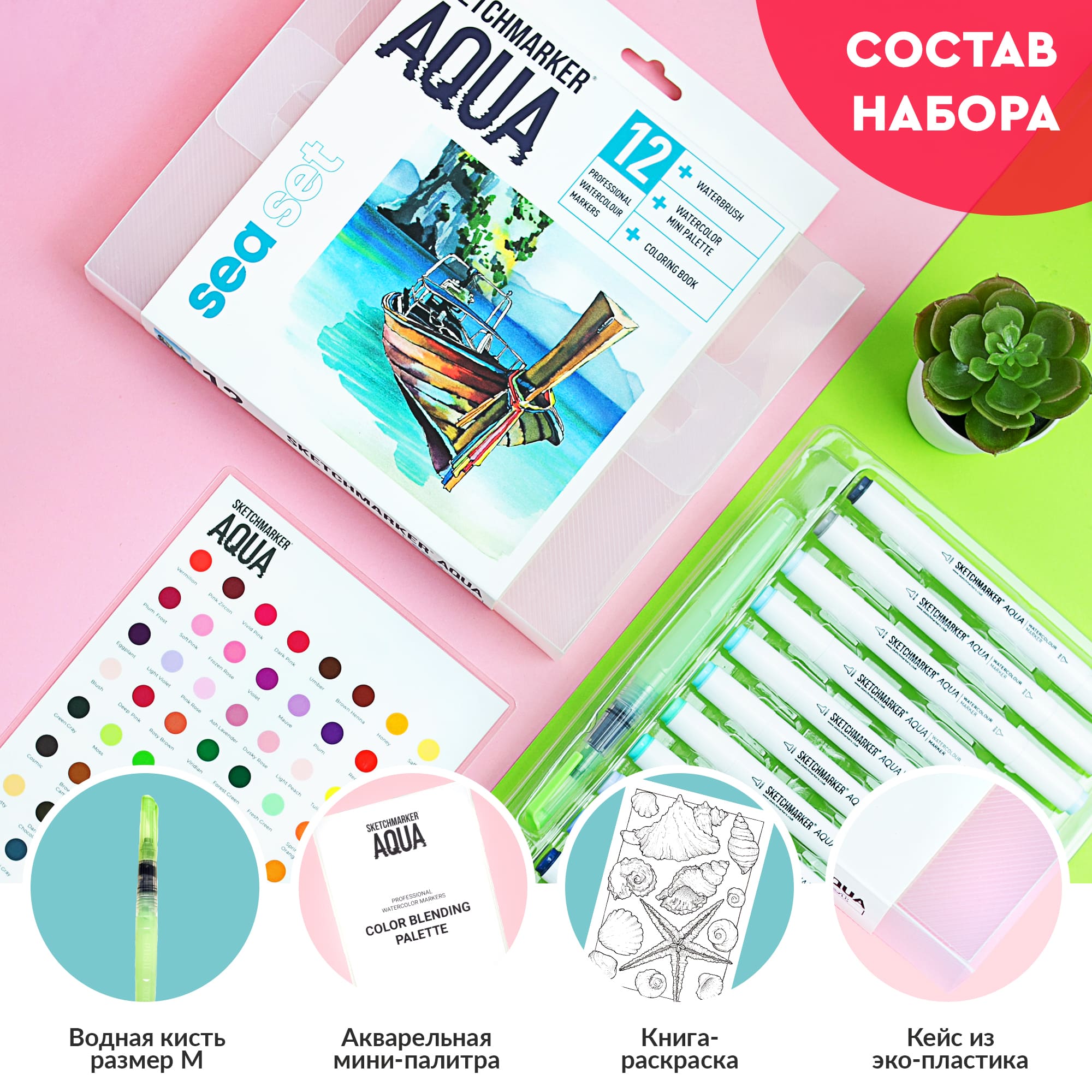 Набор двусторонних акварельных маркеров SKETCHMARKER Aqua Sea Set, 12 штук