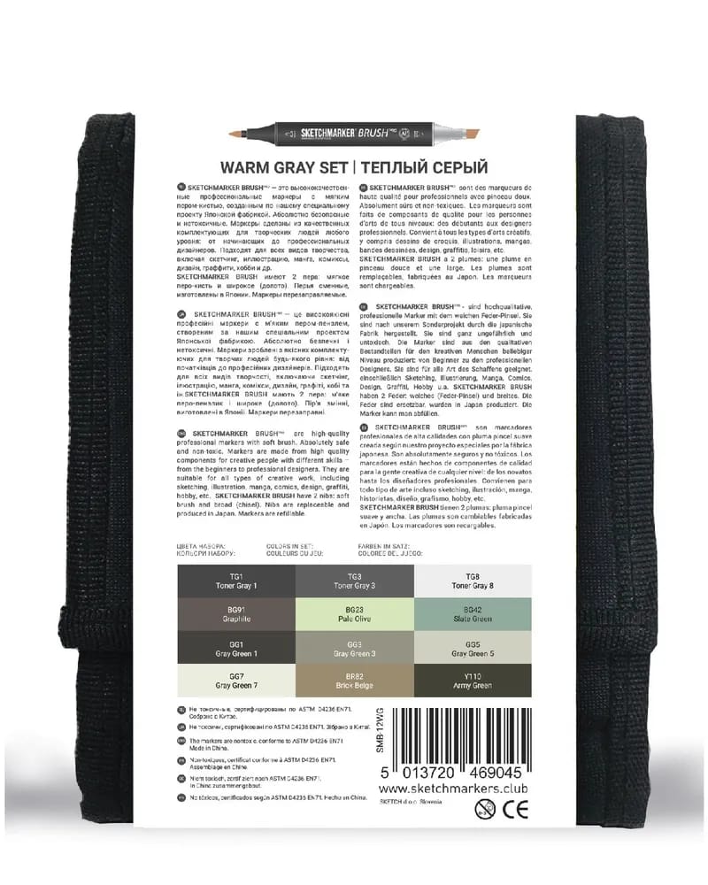Набор двусторонних маркеров SKETCHMARKER Brush Warm gray, 12 шт