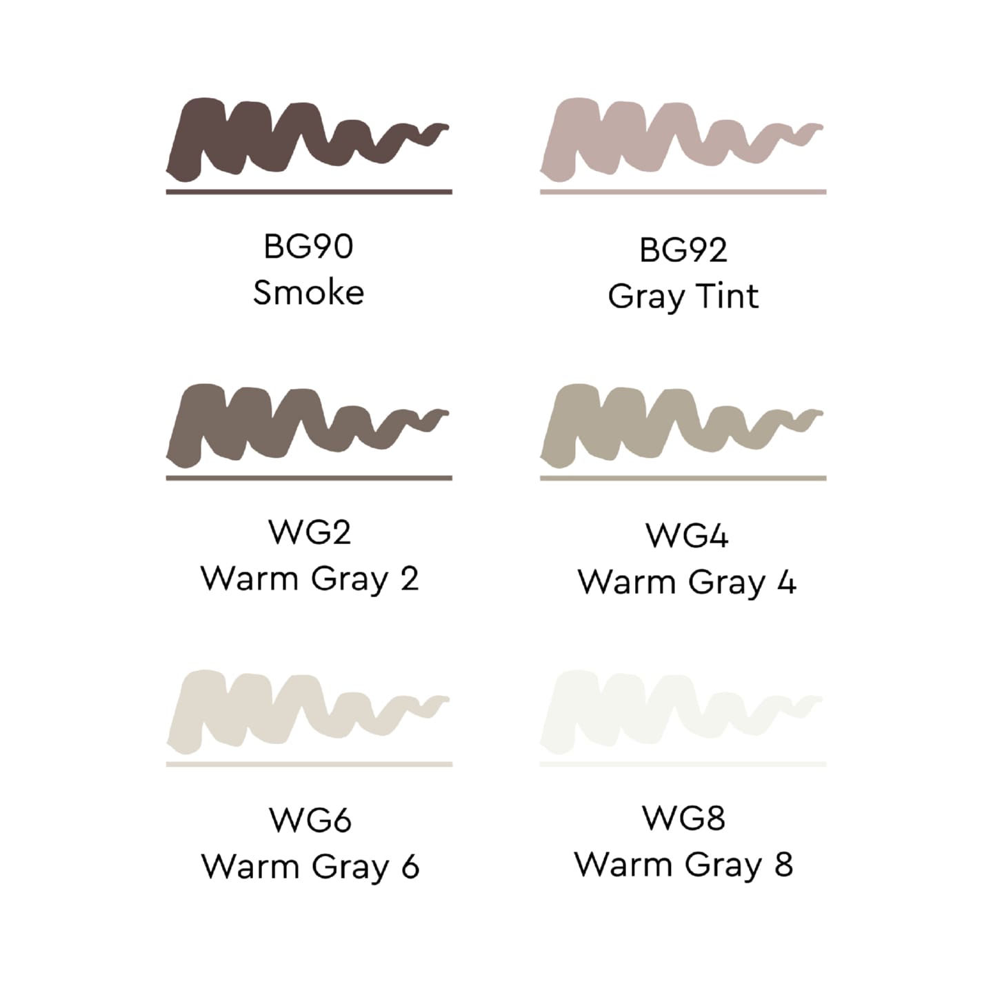 - Цвета в наборе: BG90 Дым, BG92 Серый насыщенный, WG2 Теплый серый 2, WG4 Теплый серый 4, WG6 Теплый серый 6, WG8 Теплый серый 8.