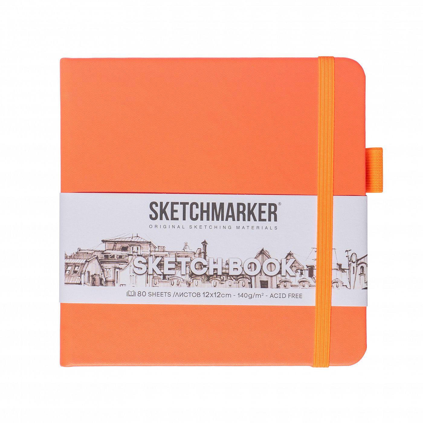Скетчбук оснащён закладкой-ляссе, эластичной резинкой для фиксации в закрытом виде и держателем для пишущего инструмента − все эти элементы выполнены в цвете обложки скетчбука.