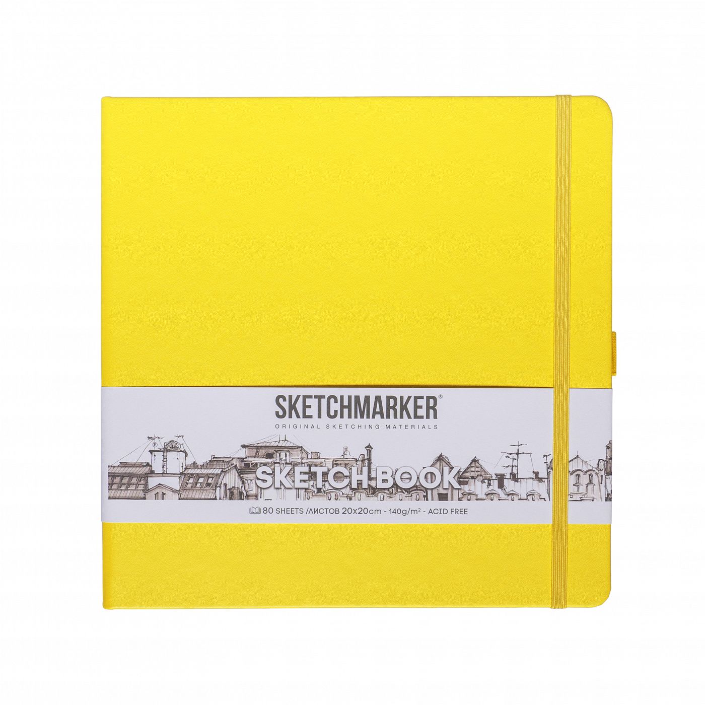 Скетчбук оснащён закладкой-ляссе, эластичной резинкой для фиксации в закрытом виде и держателем для пишущего инструмента − все эти элементы выполнены в цвете обложки скетчбука.