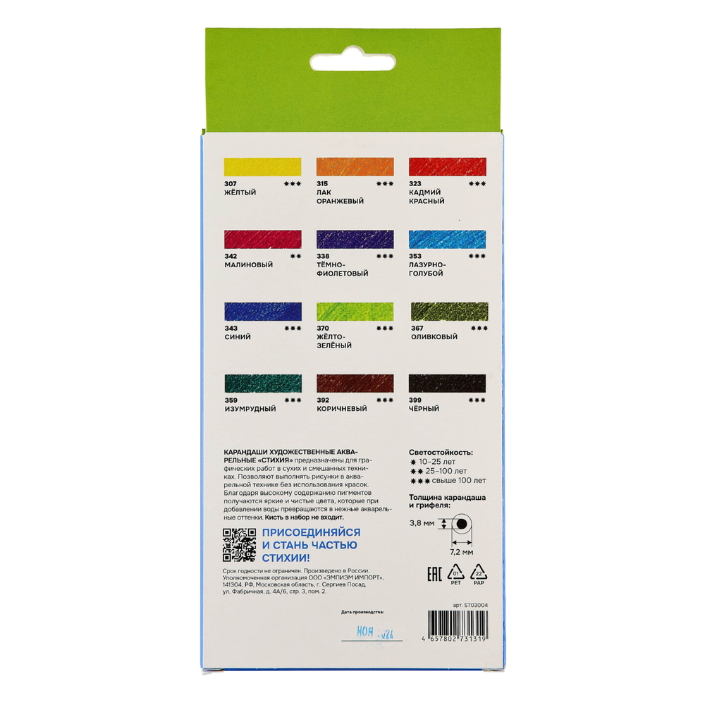 Акварельные карандаши «Стихия» — это идеальный набор для творческих занятий. Они сочетают в себе удобство карандашей и живописные возможности акварели. Благодаря своей мягкости и простоте в использовании, они подходят как для начинающих, так и для опытных художников, а также станут отличным выбором для школ и детских кружков.