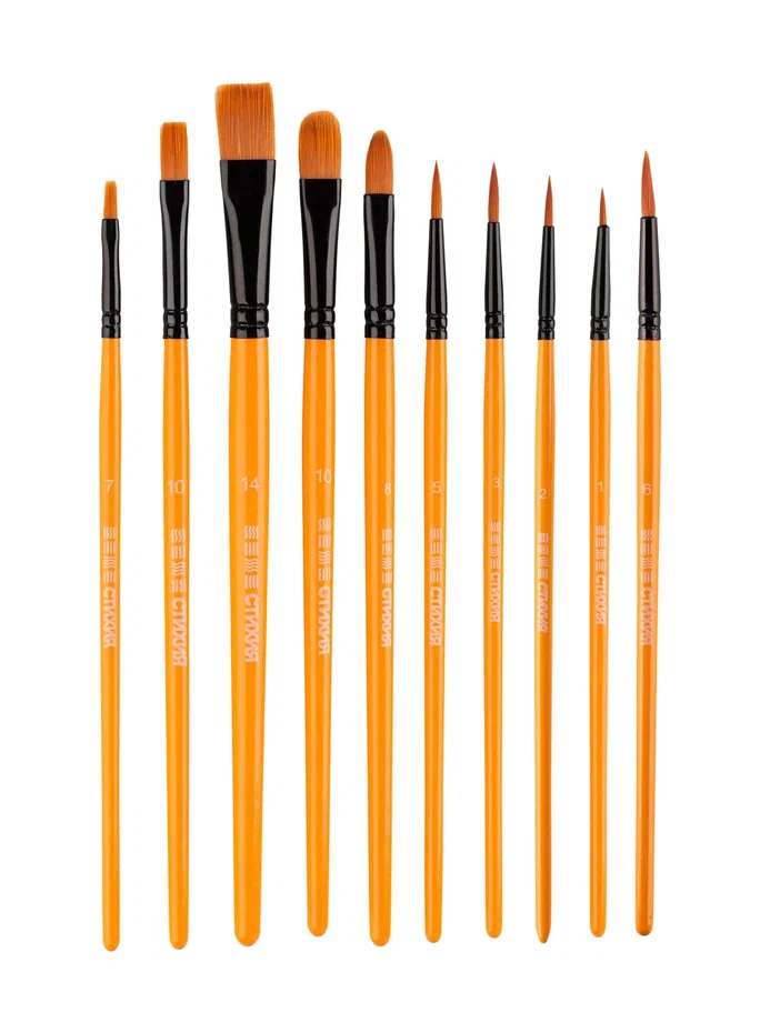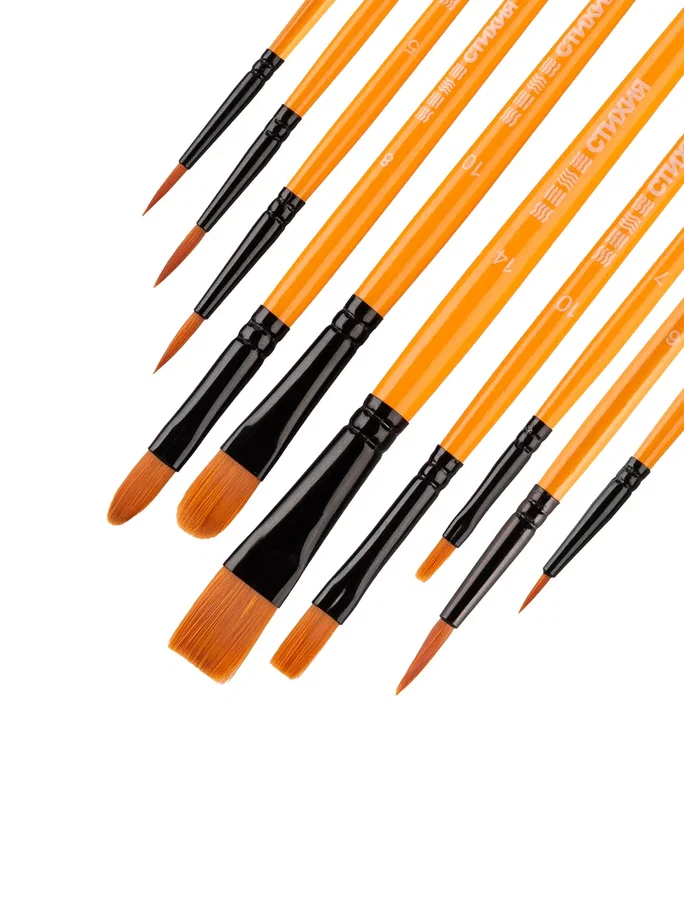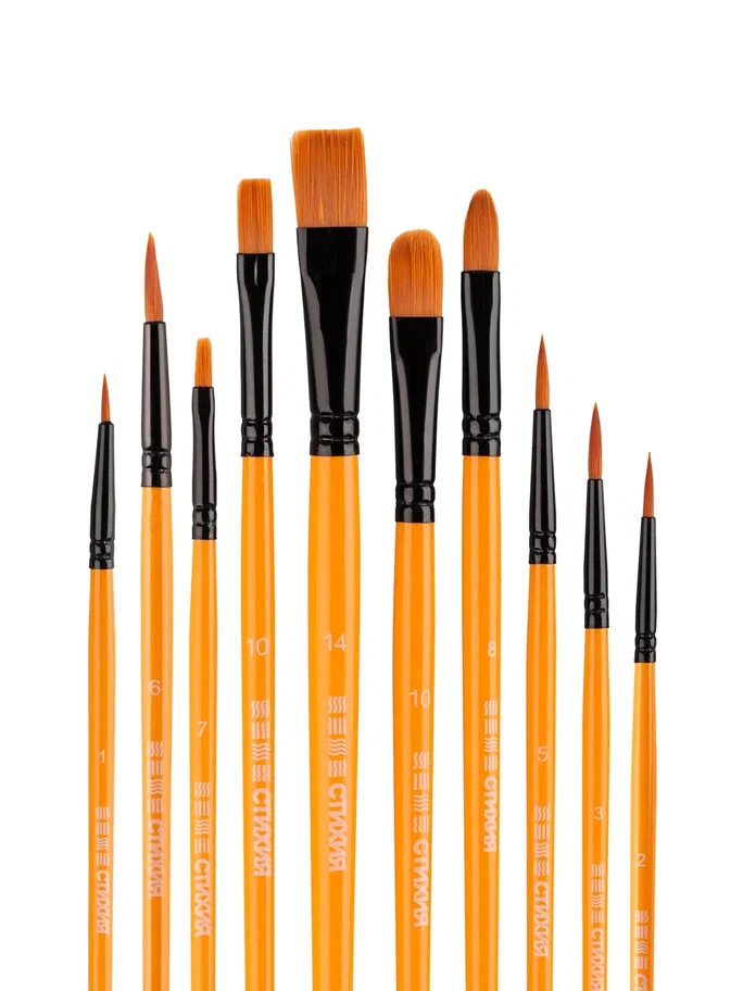 - Широкий функционал: Разные размеры и формы (плоские, овальные, круглые) позволяют работать как над крупными мазками на фоне, так и над тонкой детализацией.