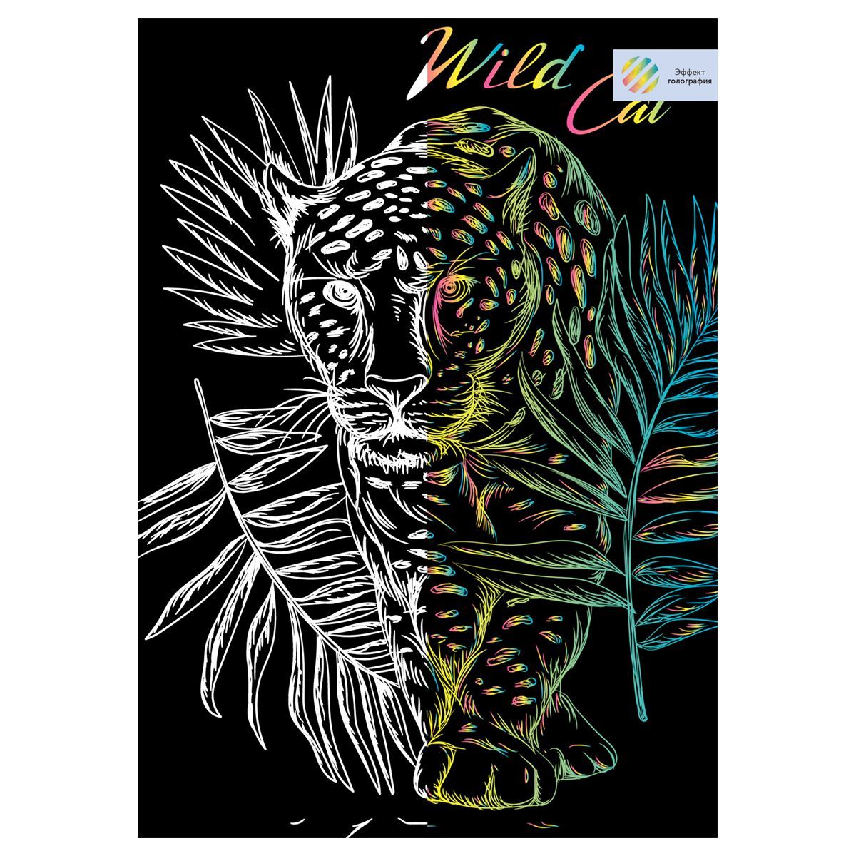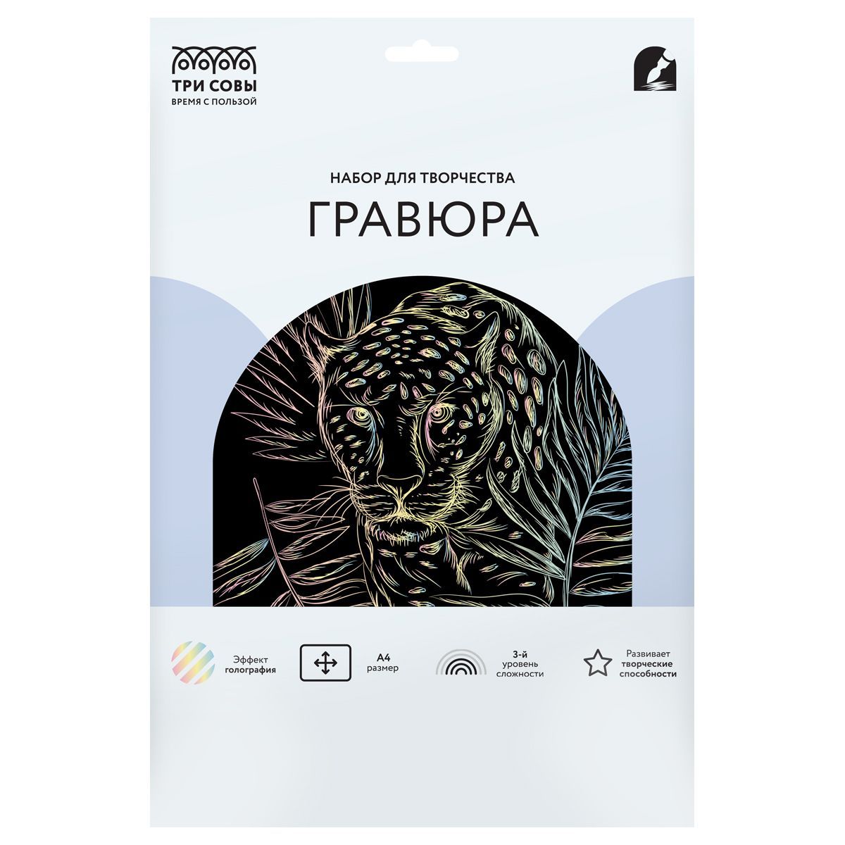 В набор «Леопард» входит основа с голографическим эффектом формата А4, штихель и крепление на стену.