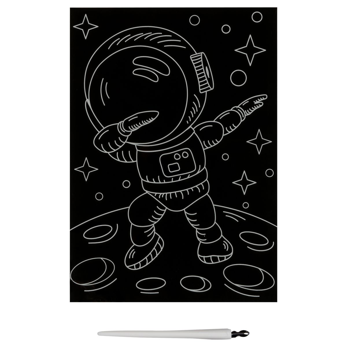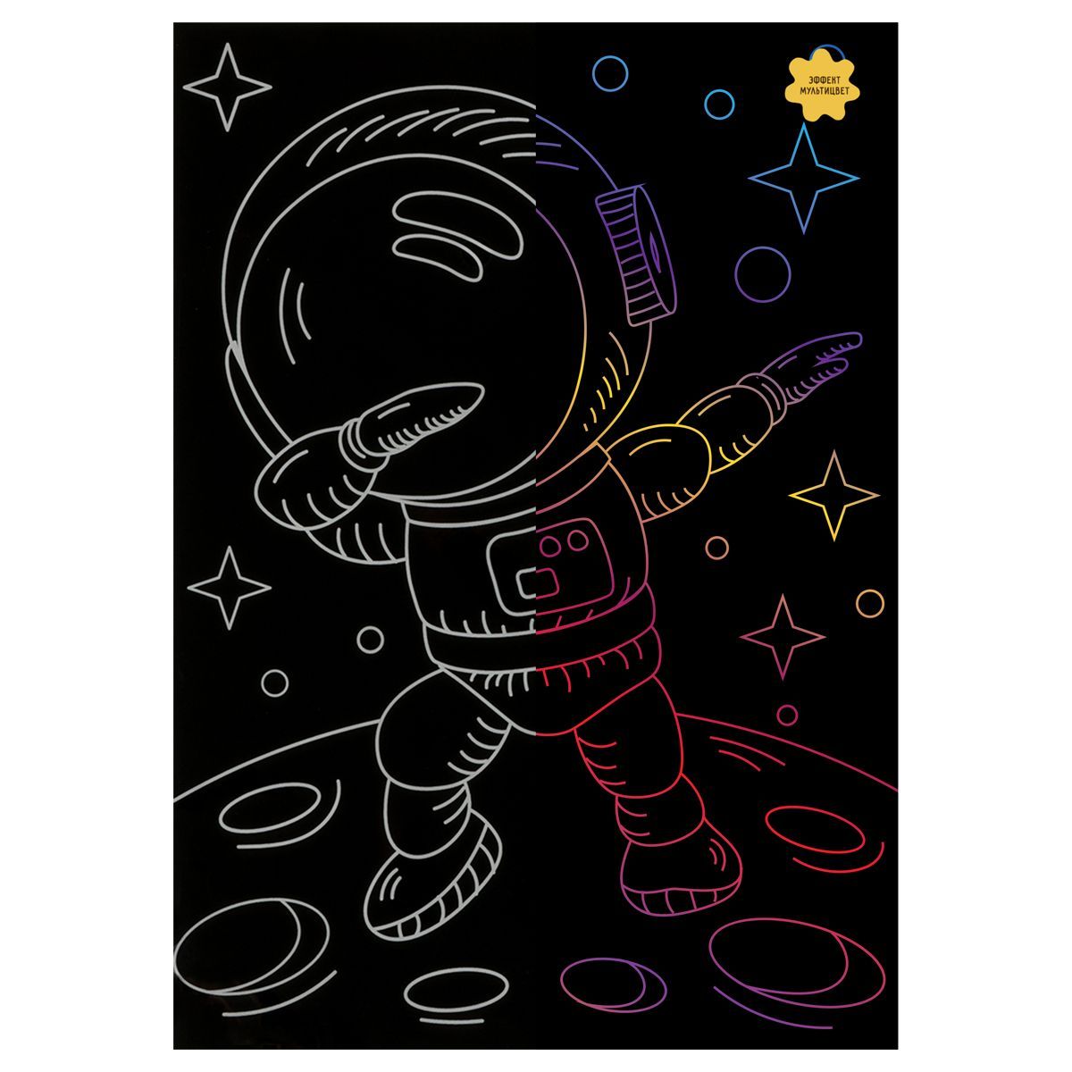 Гравюра с мультицветной основой «ТРИ СОВЫ» «Космонавт» — занимательный, увлекательный и несложный для ребенка вид творчества, который научит аккуратности и усидчивости.