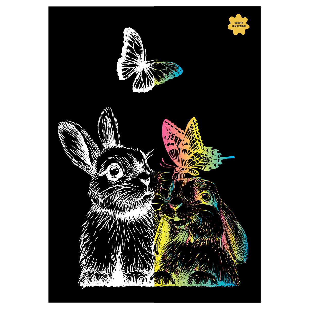 В набор «Зайчики» входит основа с голографическим эффектом формата А4, штихель и крепление на стену.