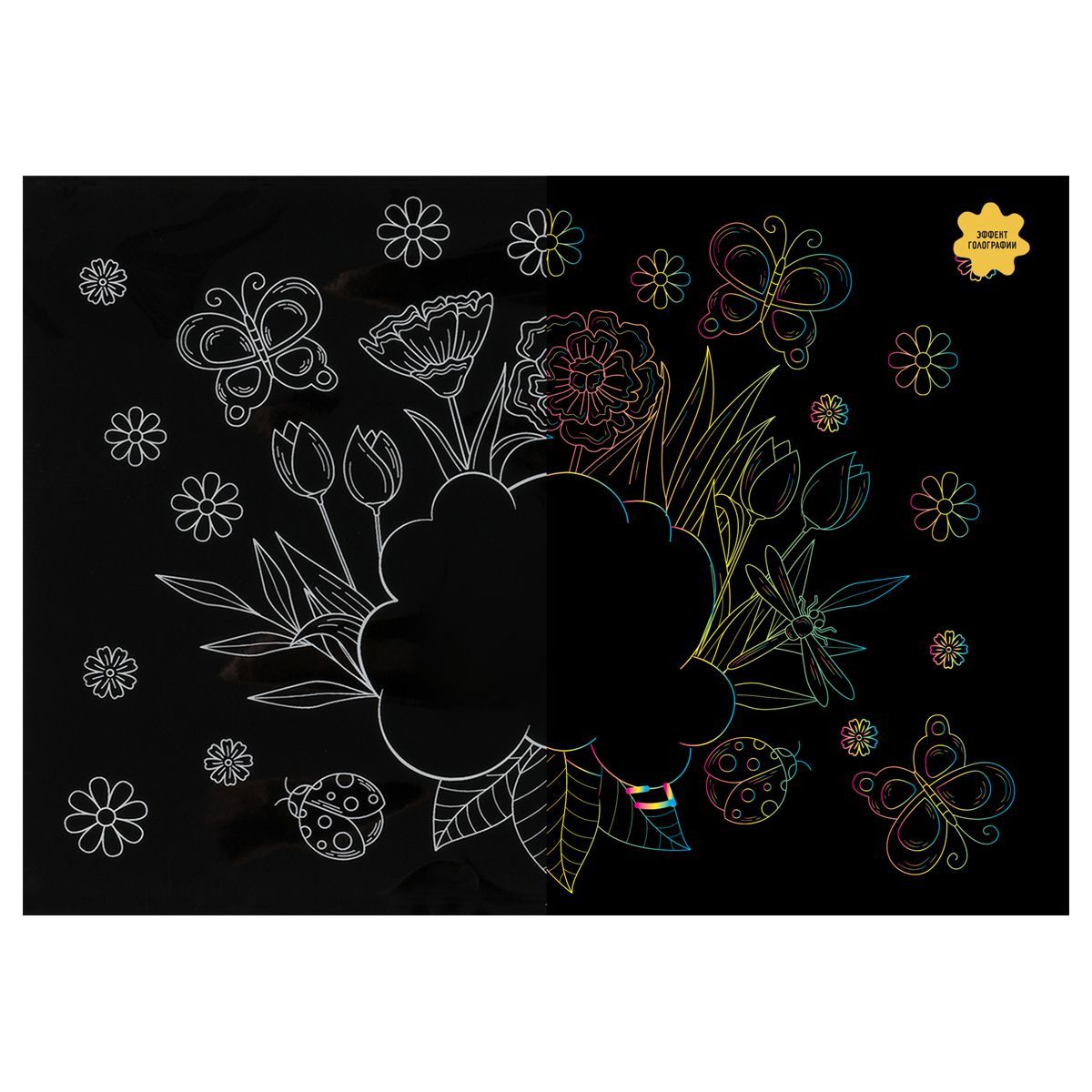 Гравюра с голографическим эффектом «ТРИ СОВЫ» «Открытка. Цветы» — занимательный, увлекательный и несложный для ребенка вид творчества, который научит аккуратности и усидчивости.