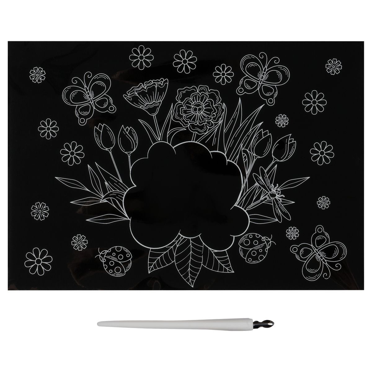 Состав набора: основа формата А5(14,8*21 см) из картона, штихель, крепление на стену.