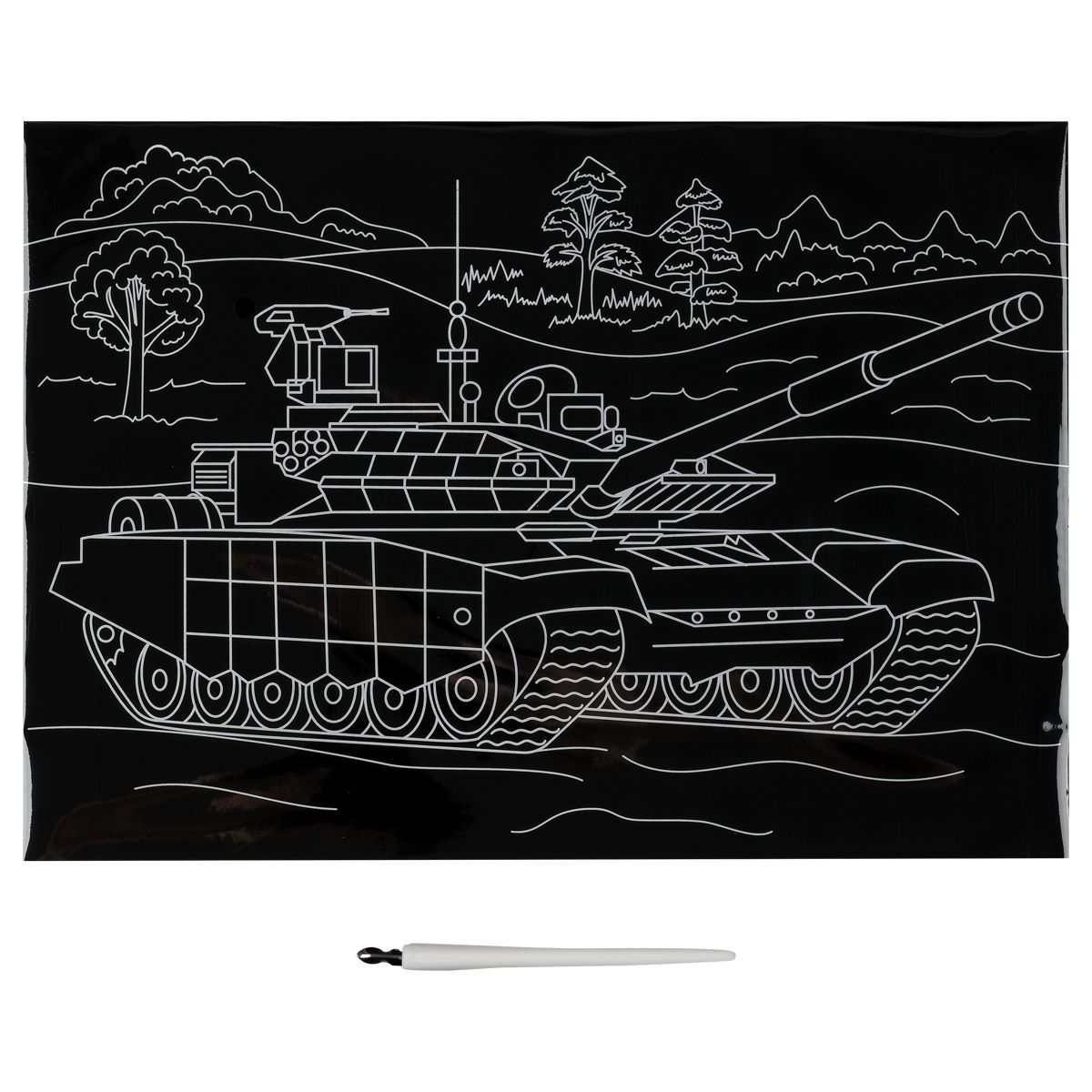 Гравюра с мультицветной основой «ТРИ СОВЫ» «Танк»— занимательный, увлекательный и несложный для ребенка вид творчества, который научит аккуратности и усидчивости.