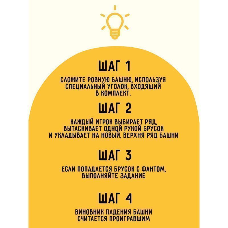 - Все действия выполняются так, чтобы башня не рухнула. Виновник катастрофы считается проигравшим. Желаем интересной игры!