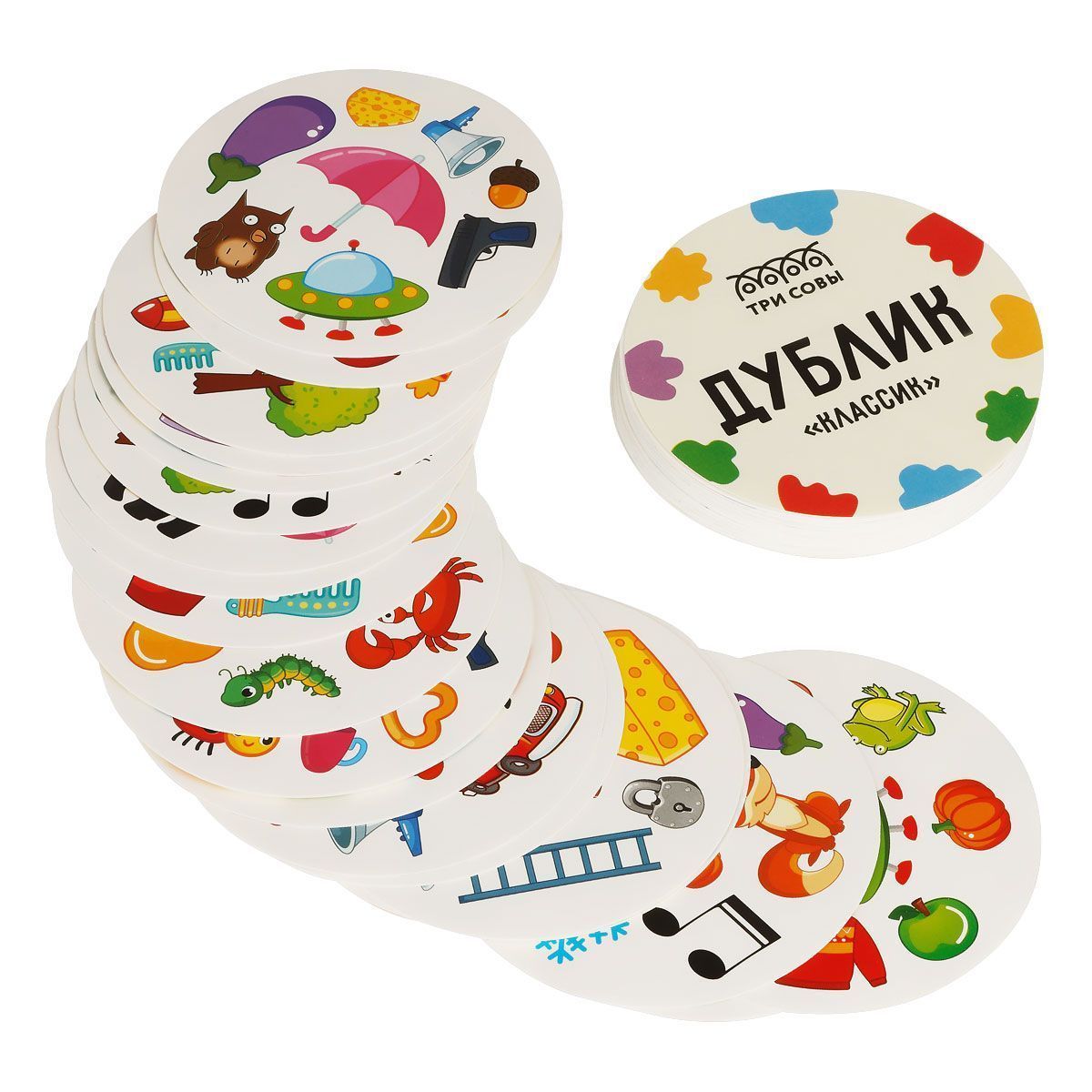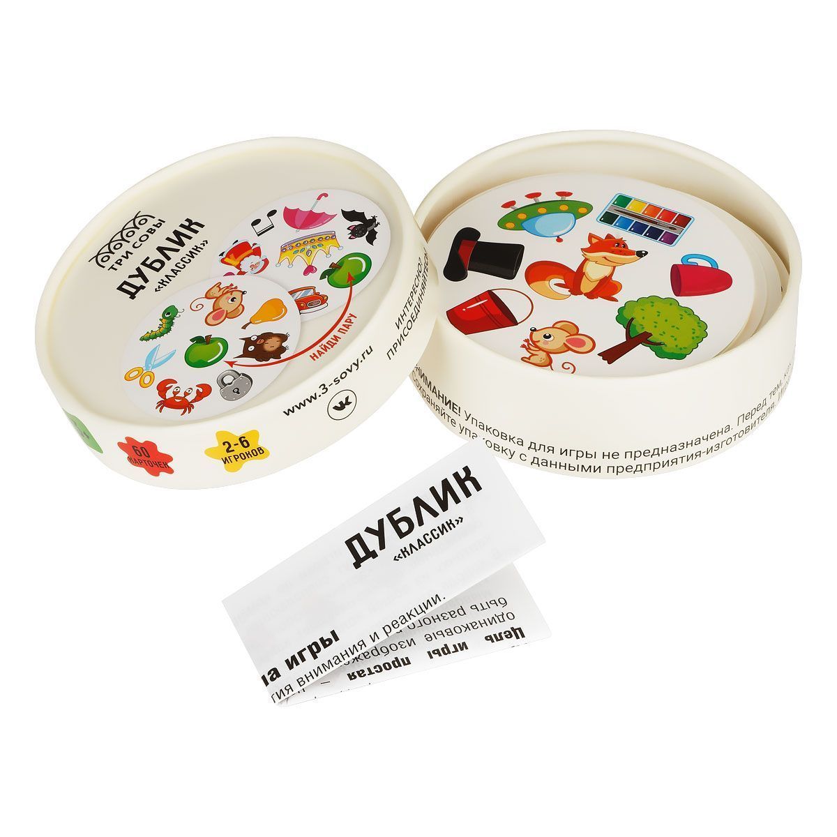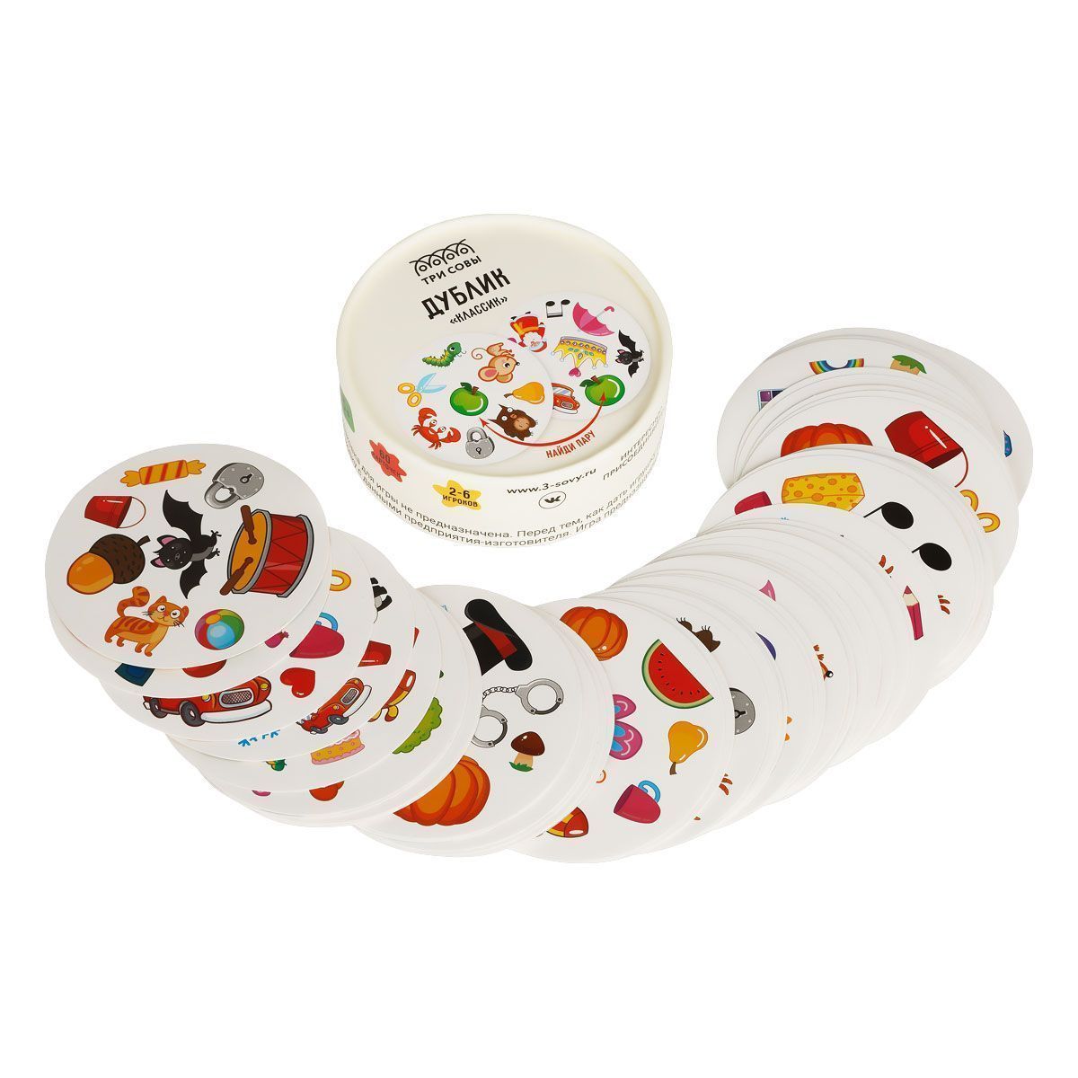 В наборе «ТРИ СОВЫ» карточки с разными картинками. Игрокам необходимо найти совпадающие изображения быстрее всех.