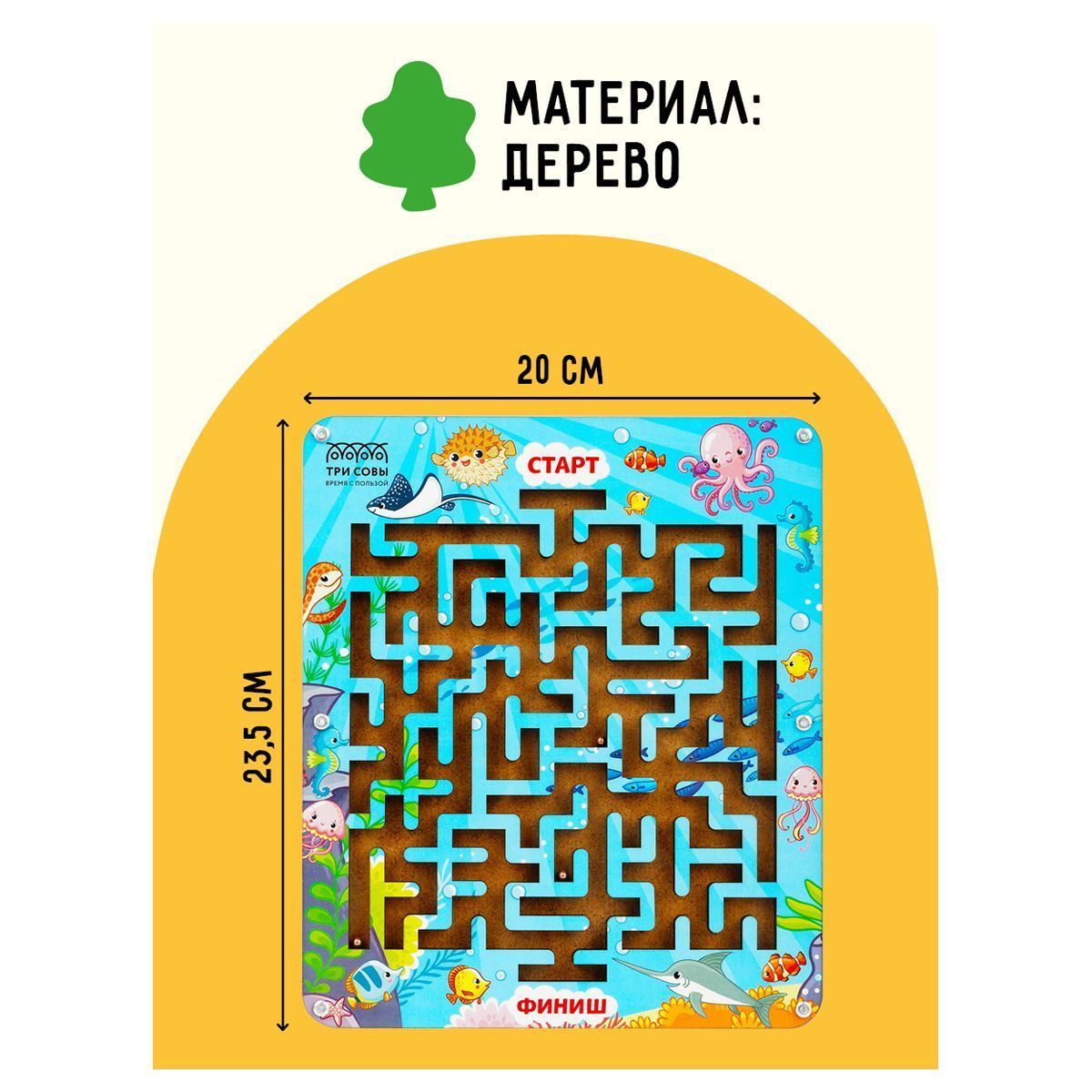 —Настольная игра: ТРИ СОВЫ "Лабиринт большой с шариками. Океан" дерево RE-Н000173