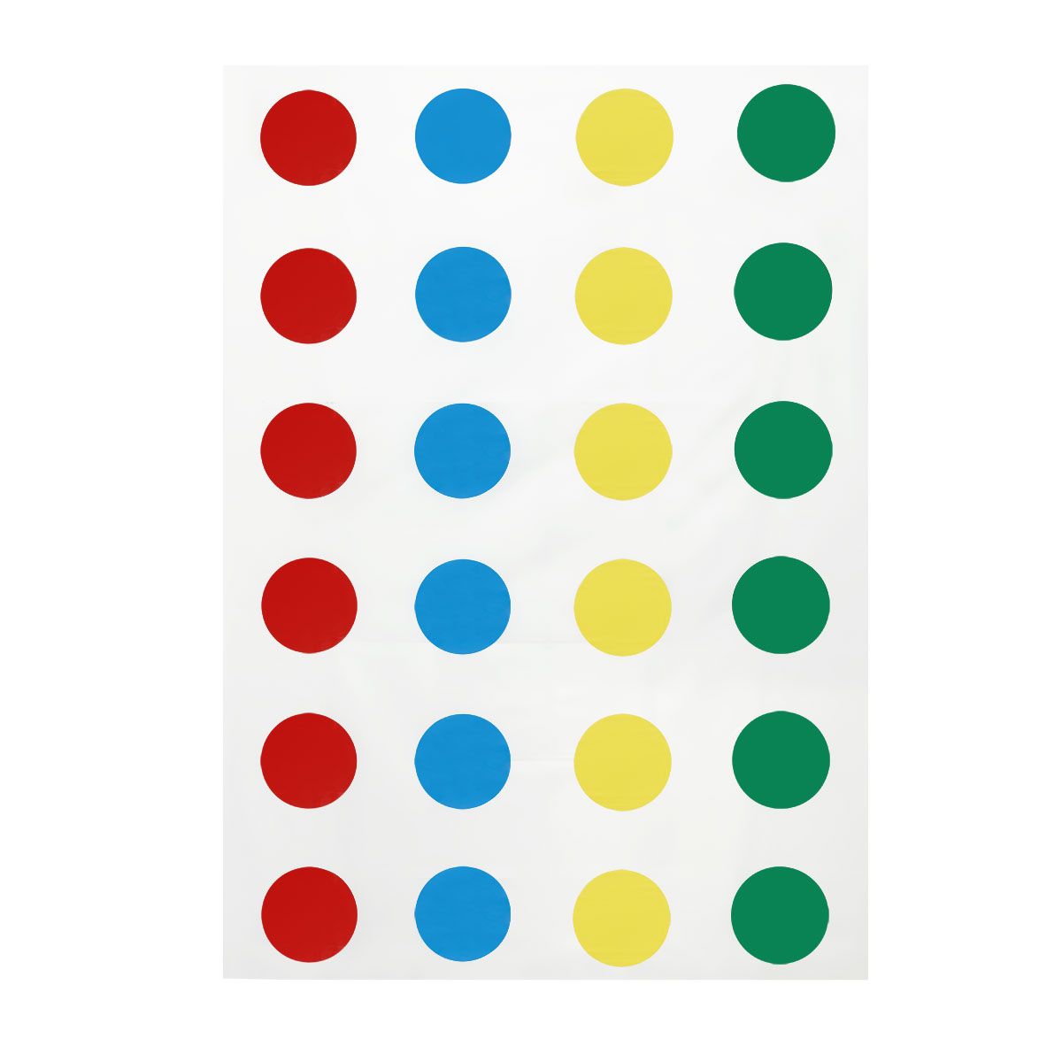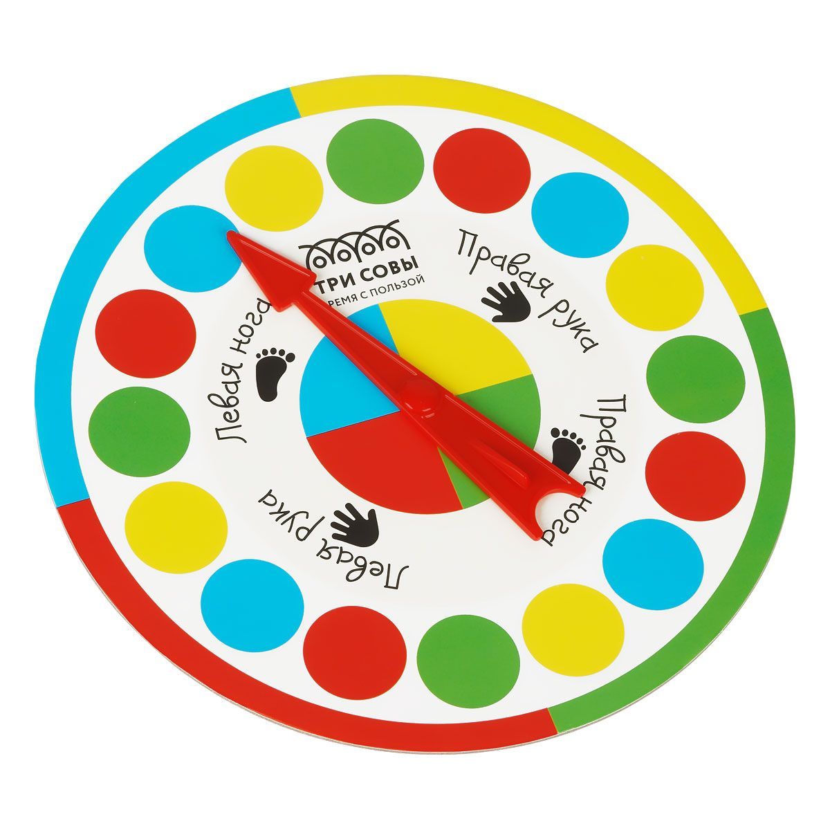 В каждом ряду их по шесть штук – жёлтого, красного, зелёного и синего цветов. К игре прилагается рулетка, которая представляет собой круг из прочного картона, поделенный на 4 секции: левая и правая рука, левая и правая нога.