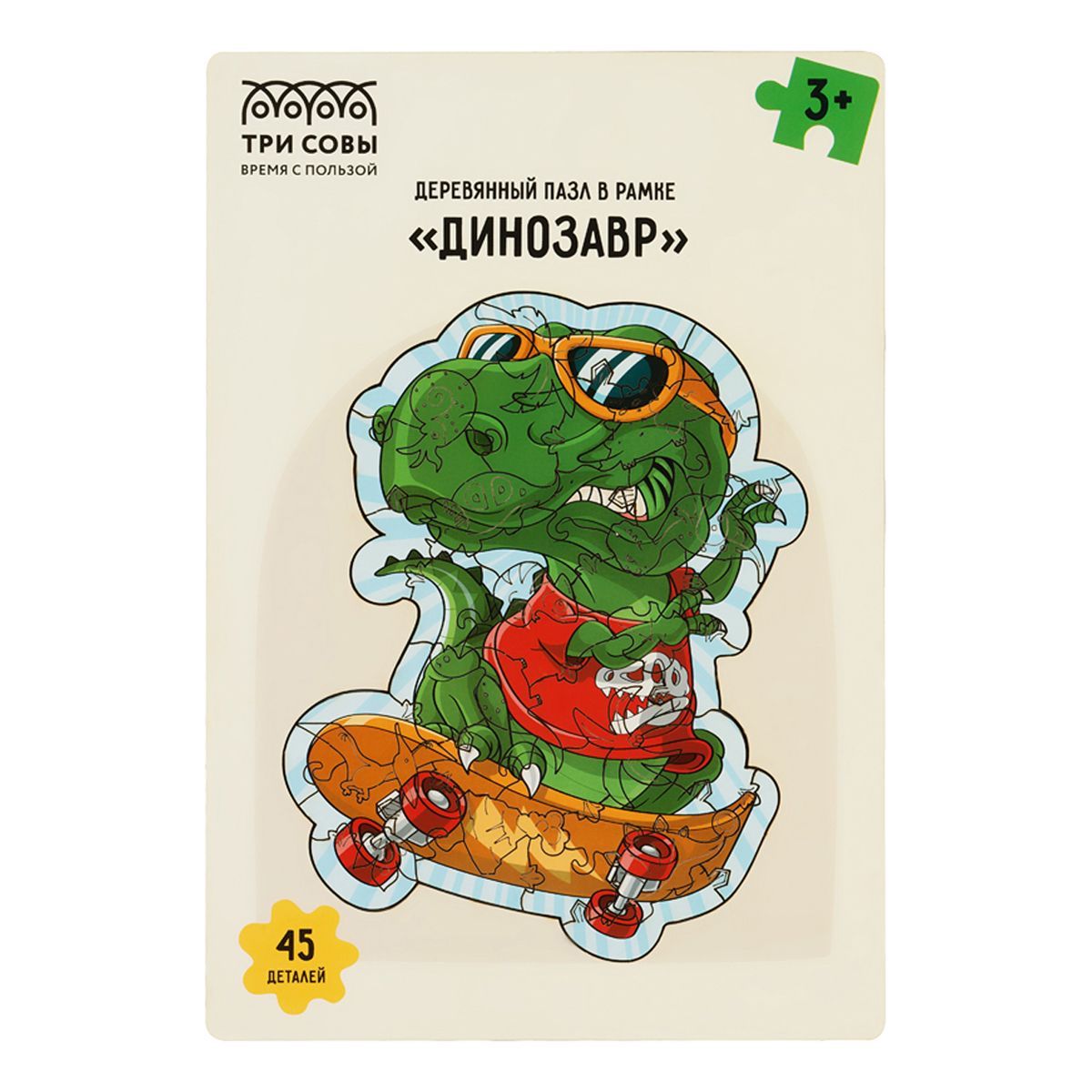 Деревянные пазлы в рамке «ТРИ СОВЫ» состоят из двух частей: самого сборного рисунка и подложки с дублирующей картинкой, которая поможет ребенку правильно подобрать элементы.