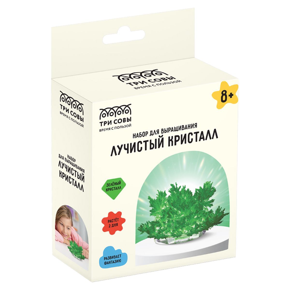 Набор для выращивания кристаллов «ТРИ СОВЫ» поможет вырастить великолепный зелёный лучистый кристалл всего за 1 день.