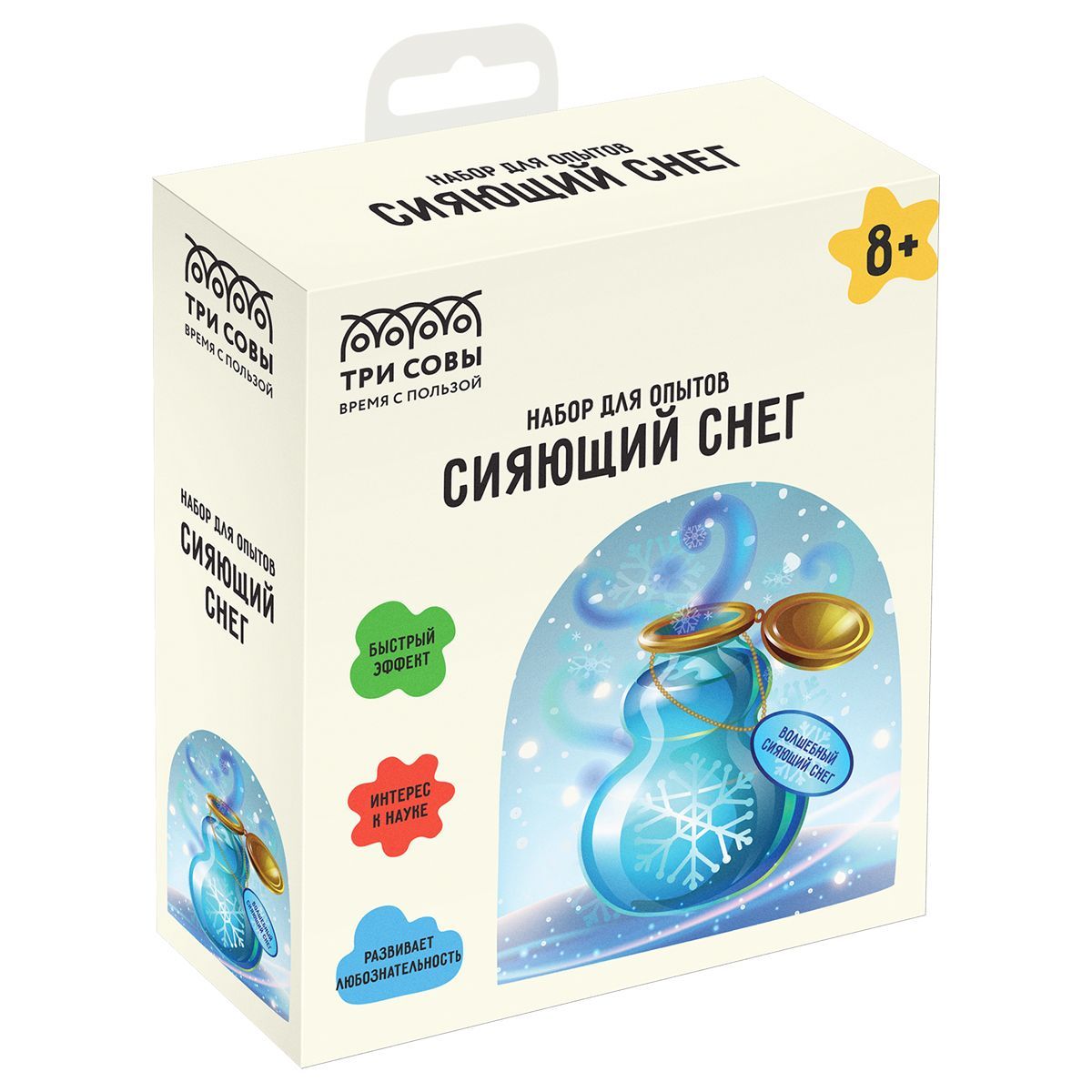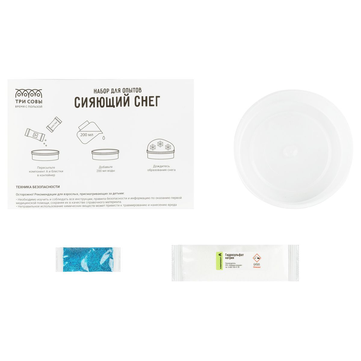 В процессе опыта на ваших глазах сухой порошок превращается в сияющий искусственный снег, из которого можно лепить.